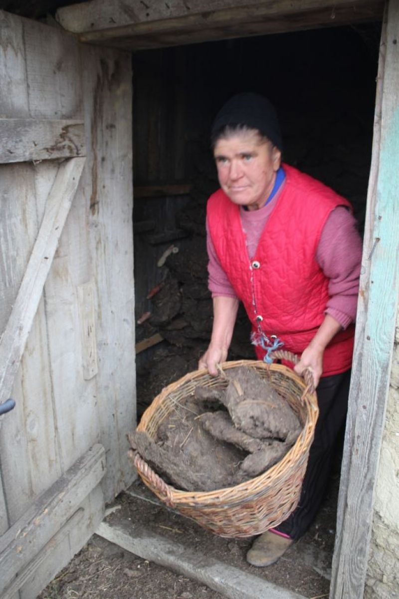 ”De unde lemn? Este dacă îl cumperi. Dar cine are bani să cumpere un metru cub de lemn. Dai patru milioane pe un camion şi nici nu te ţine mare lucru. Dacă este lemn de brad, face mai mult scântei şi se termină imediat. Balega cu paiele nu costă nimic. Munceşti până îl faci şi miroase. Dar cu ce să te încălzeşti? Sunt oameni care au 400 de lei de tot. Cu ce mai mânâncă? Aşa că facem tîzâc.”, spune săteanca.