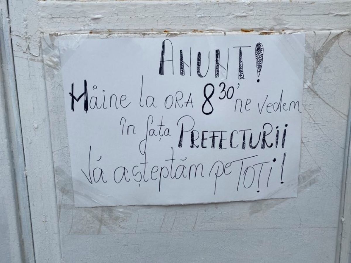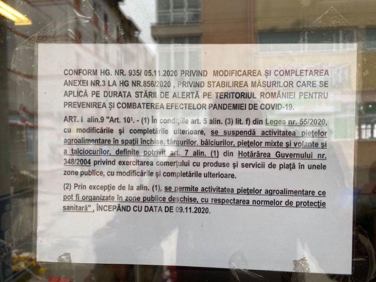 De altfel, la intrarea principală în hală, lângă anunțul privind închiderea piețelor din cauza Covid, era altul și mai mare: ”Mâine la ora 8:30 ne vedem în fața Prefecturii. Vă așteptăm pe toți!”