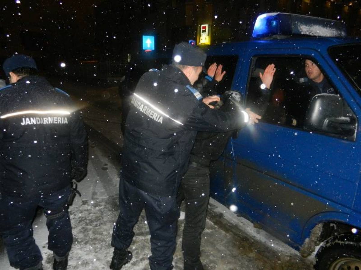 Nemulţumit, scandalagiul a lovit cu pumnii şi picioarele în uşa de la intrare, spărgând un geam termopan, moment în care administratorul a sunat la dispeceratul Inspectoratului de Jandarmi Judeţean Botoşani şi a solicitat intervenţia forţelor de ordine. Echipajul de jandarmi care s-a deplasat în urma apelului l-a găsit pe scandalagiu în acelaşi loc şi a procedat la imobilizarea şi încătuşarea acestuia, din cauza comportamentului recalcitrant şi a refuzului de a relaţiona cu oamenii legii.