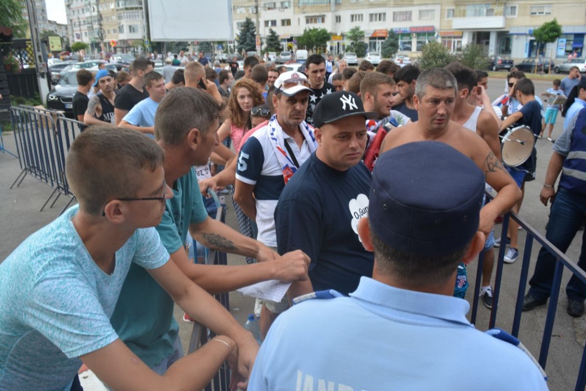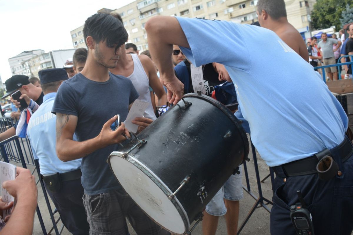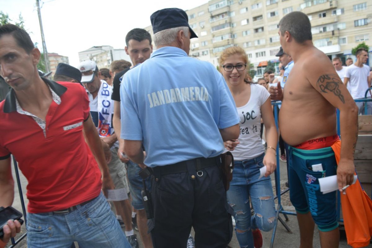 Ca de obicei când ordinea la partidele botoşănenilor este asigurată de Gruparea Mobilă de Jandarmi de la Bacău, la intrările în arenă apar o mulţime de probleme şi de conflicte. Venită cu cel puţin trei sferturi înainte de fluierul de start, galeria a fost oprită la poartă pe care pătrunde de obicei în teren. Jandarmii le dădeau voie ultraşilor cu steaguri, dar fără suport, cu toate că acesta nu era nici din lemn, nici din cauciuc. În zonă a venit Alexandru Chirilă, directorul sportiv al FC Botoşani, rămas realmente şocat de ceea ce se întâmplă. Acesta a relatat că s-a stabilit foarte clar la şedinţa cu forţele de ordine dinaintea meciului obiectele cu care se poate pătrunde pe arenă.