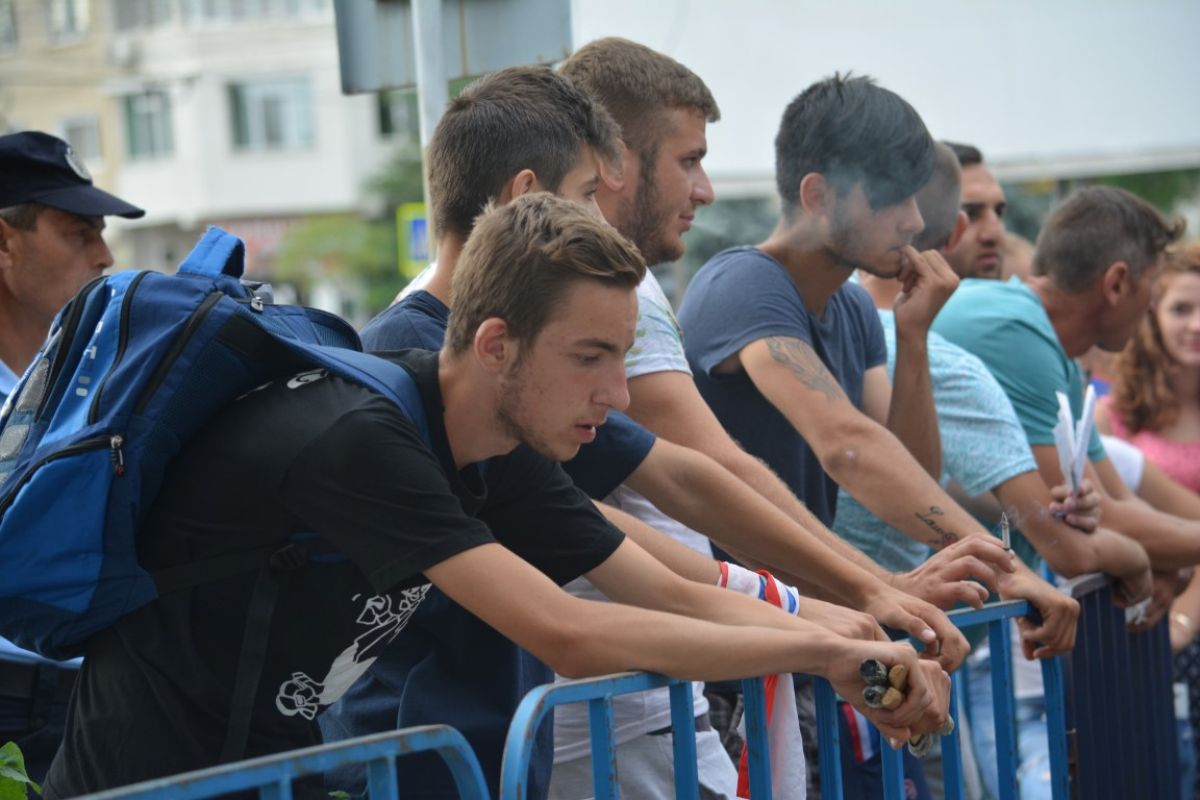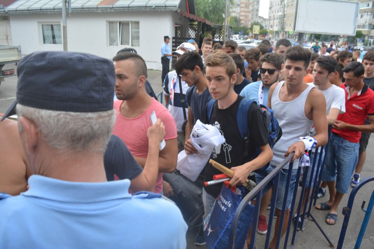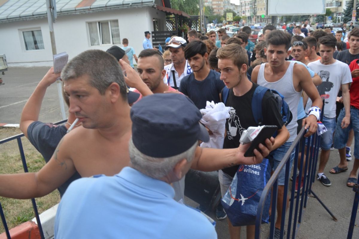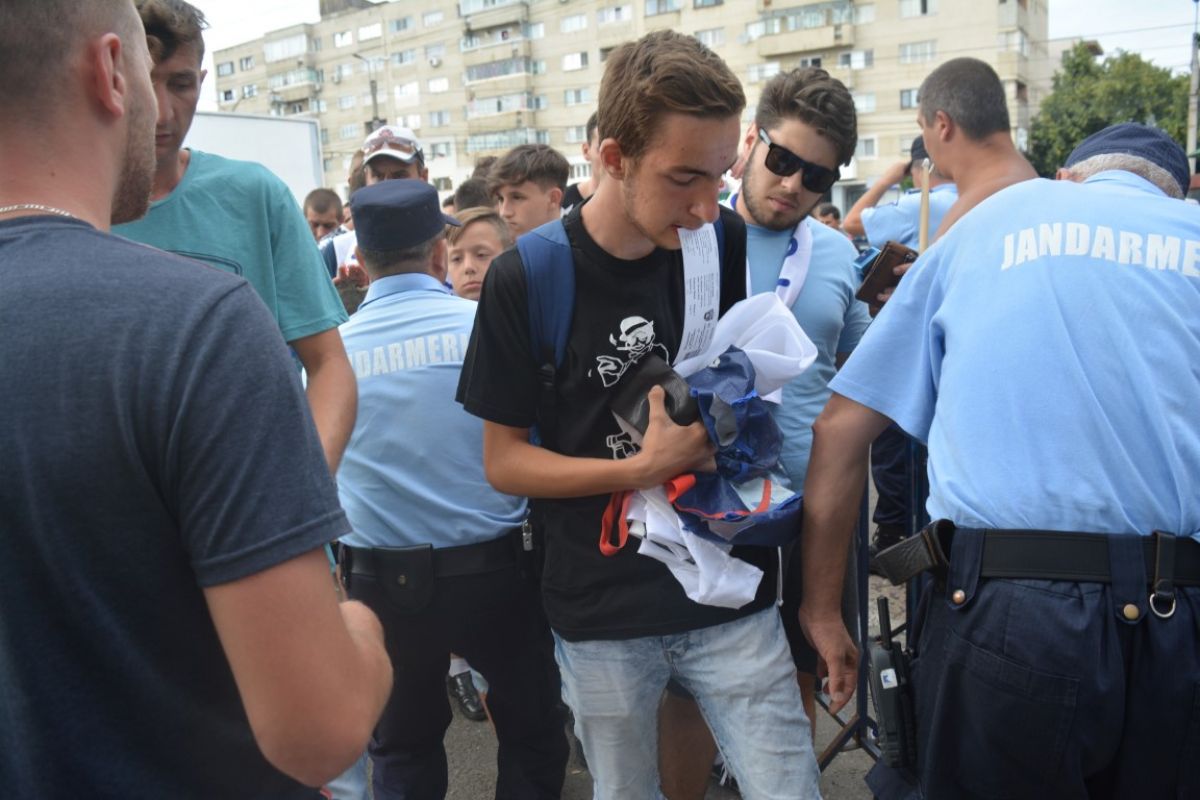 Ca de obicei când ordinea la partidele botoşănenilor este asigurată de Gruparea Mobilă de Jandarmi de la Bacău, la intrările în arenă apar o mulţime de probleme şi de conflicte. Venită cu cel puţin trei sferturi înainte de fluierul de start, galeria a fost oprită la poartă pe care pătrunde de obicei în teren. Jandarmii le dădeau voie ultraşilor cu steaguri, dar fără suport, cu toate că acesta nu era nici din lemn, nici din cauciuc. În zonă a venit Alexandru Chirilă, directorul sportiv al FC Botoşani, rămas realmente şocat de ceea ce se întâmplă. Acesta a relatat că s-a stabilit foarte clar la şedinţa cu forţele de ordine dinaintea meciului obiectele cu care se poate pătrunde pe arenă.