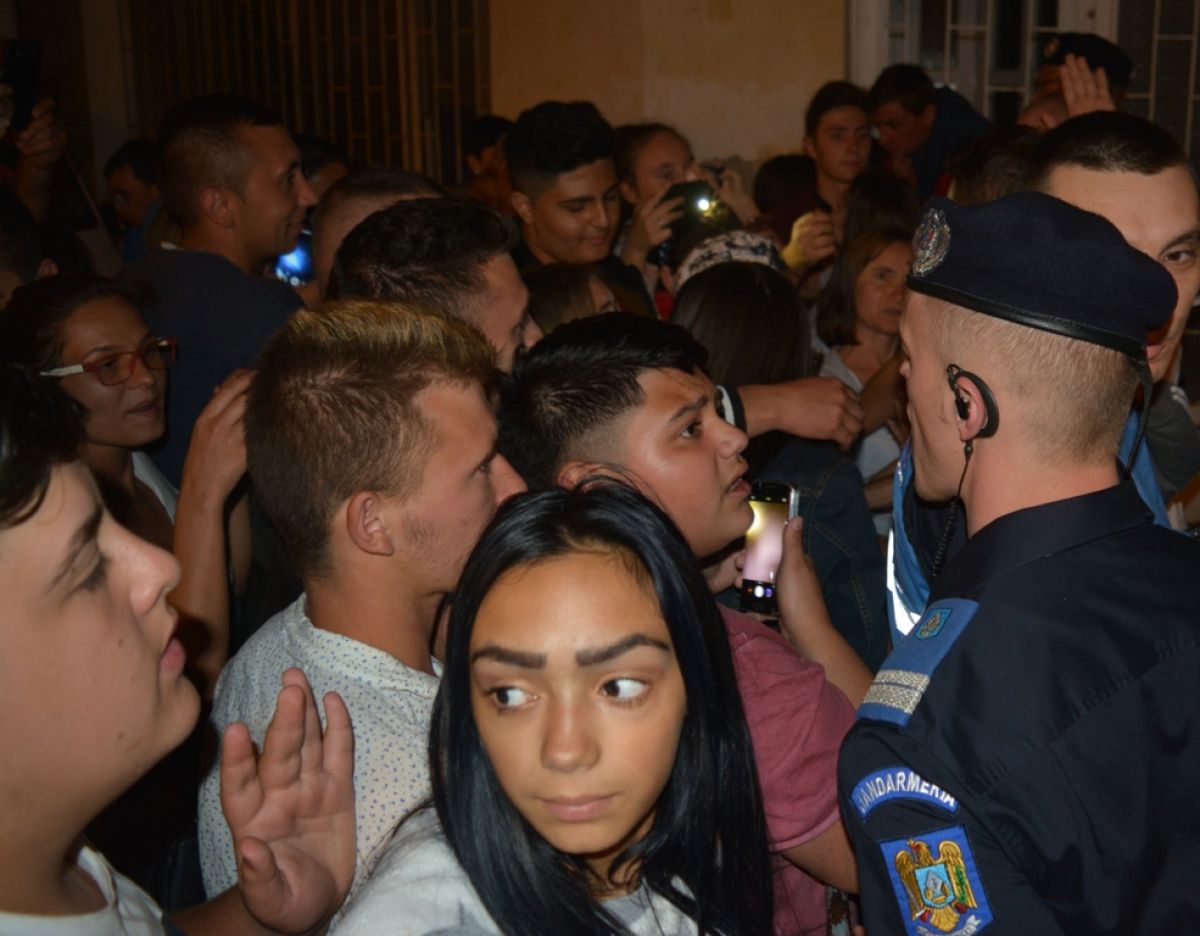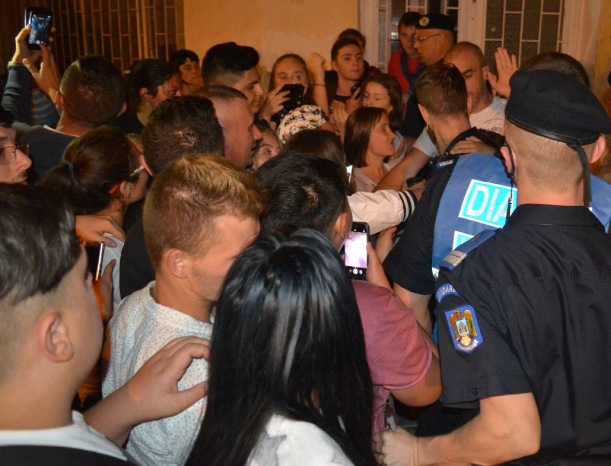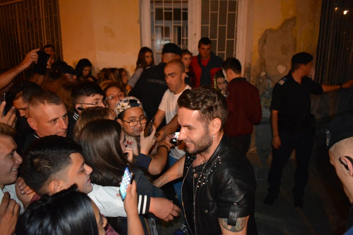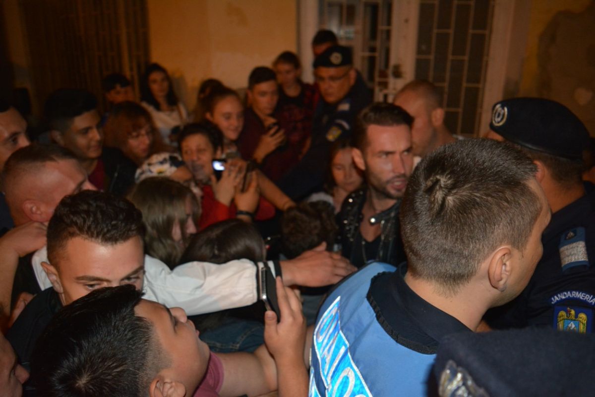 După câteva minute, pe măsură ce interpretul a dat curs solicitărilor de poza și autografe, spiritele s-au mai liniștit.