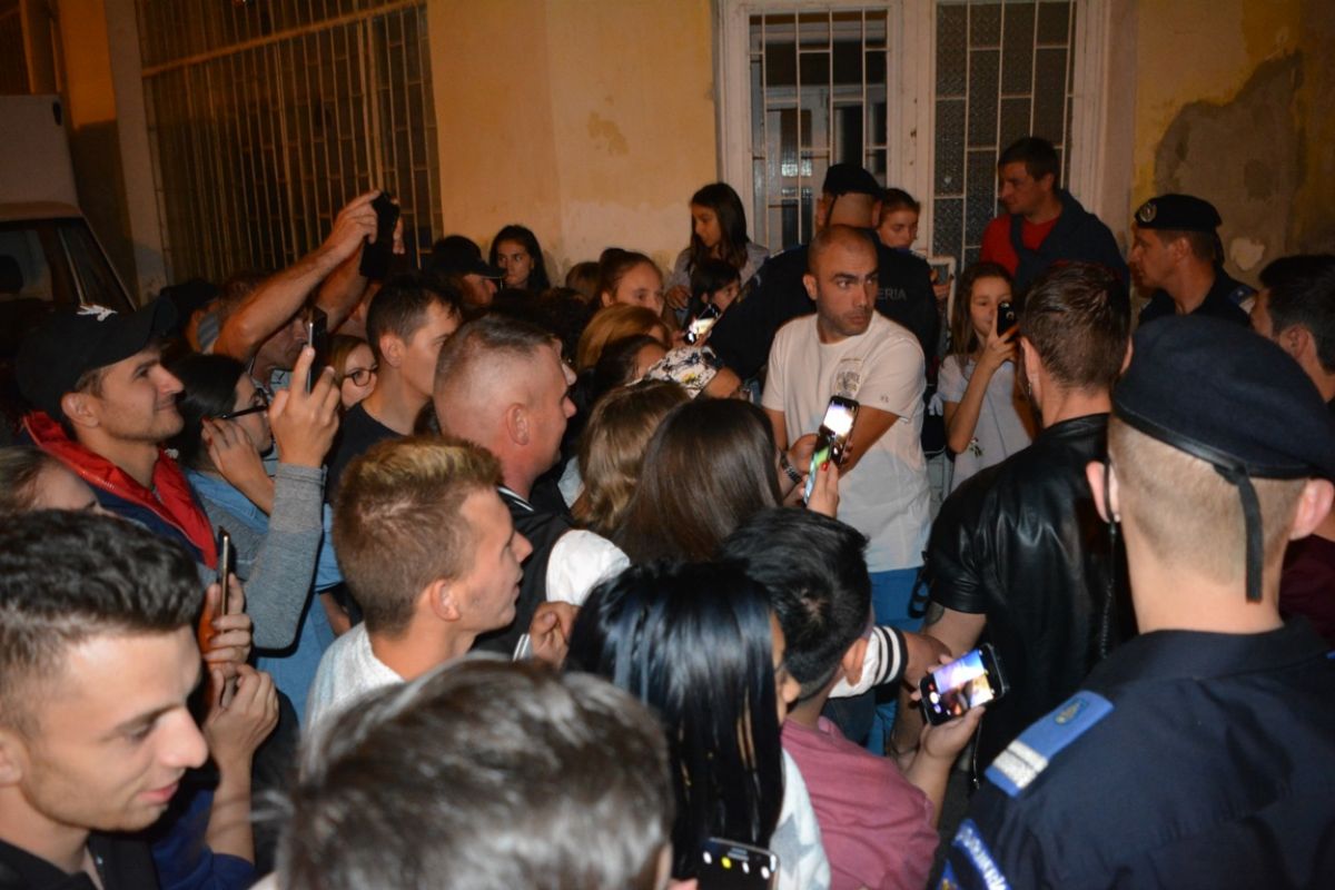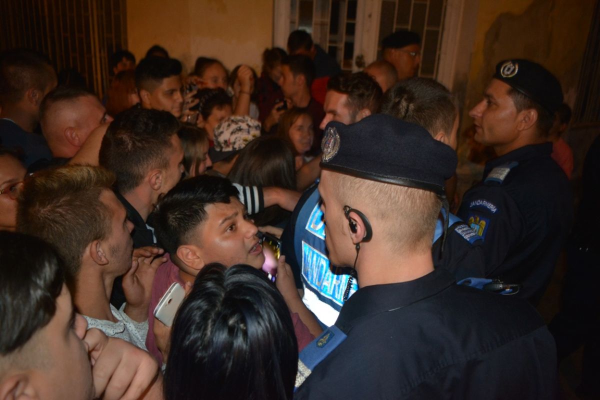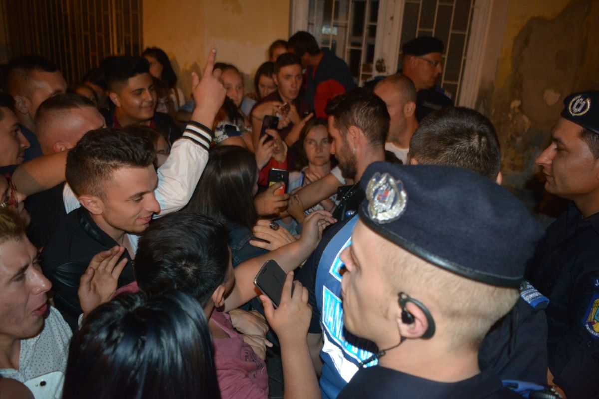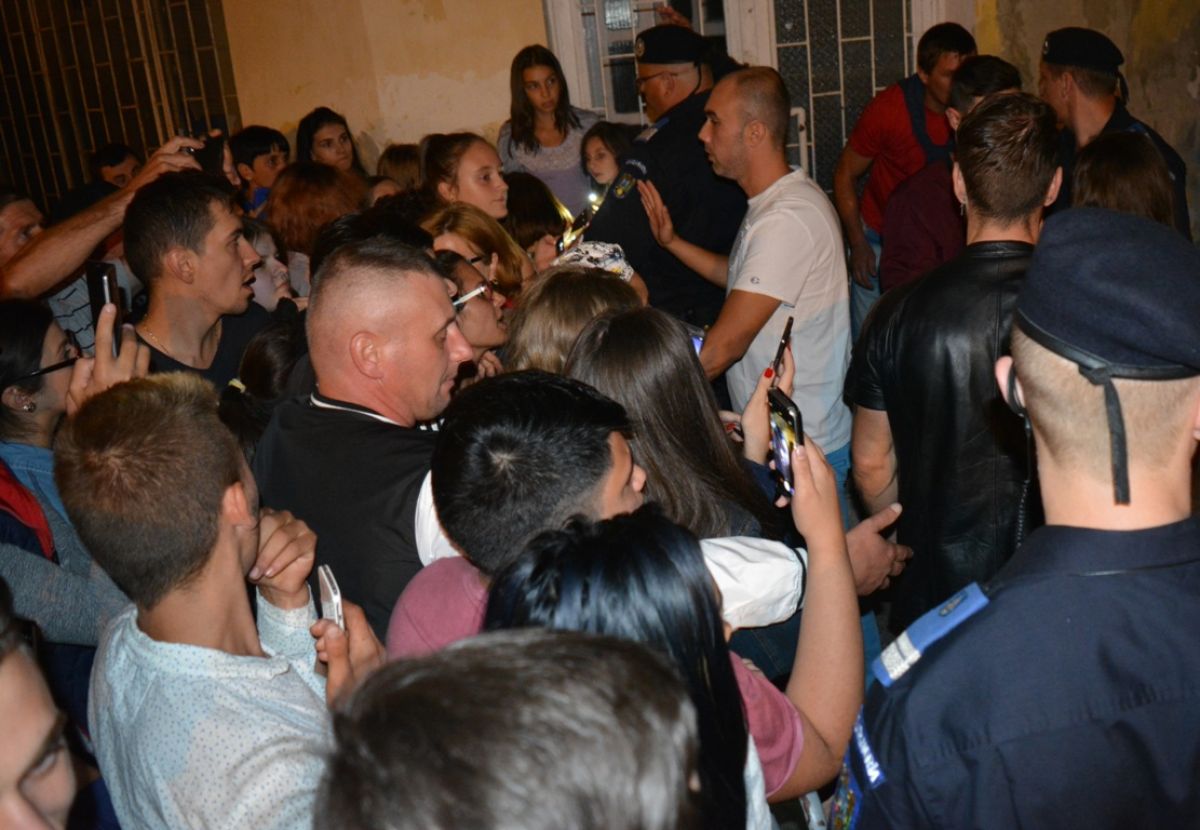 După câteva minute, pe măsură ce interpretul a dat curs solicitărilor de poza și autografe, spiritele s-au mai liniștit.