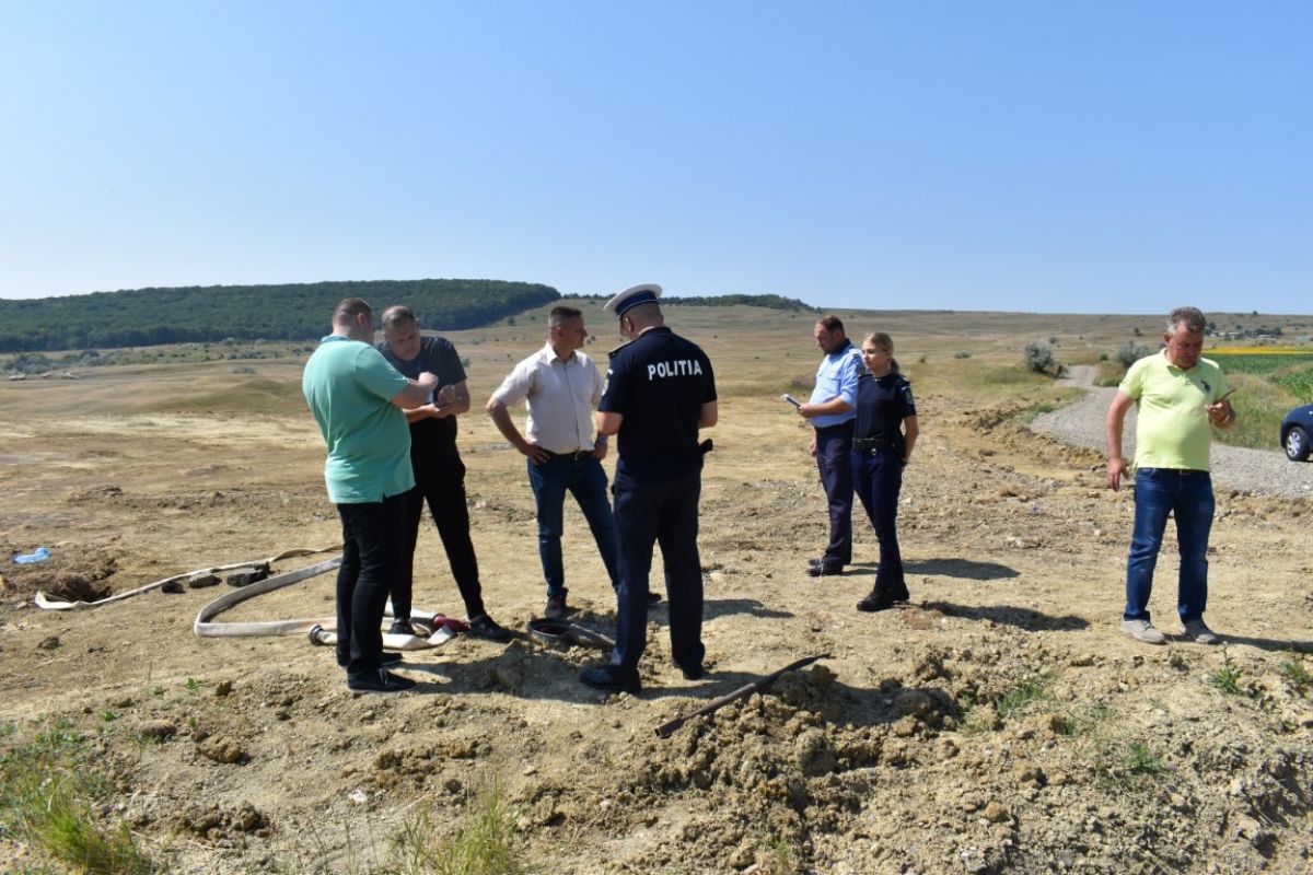 Reprezentanții Nova Apaserv împreună cu echipajul local de poliție solicitat prin 112 se aflau pe marginea unui iaz din Ipotești, comuna Mihai Eminescu. Acolo, la un hidrant suprateran a fost montat un dispozitiv atașat la un furtun care mai departe era conectat la o conductă îngropată ce prelua apa din rețeaua publică și o direcționa către un iaz aflat undeva la câteva zeci de metri distanță.