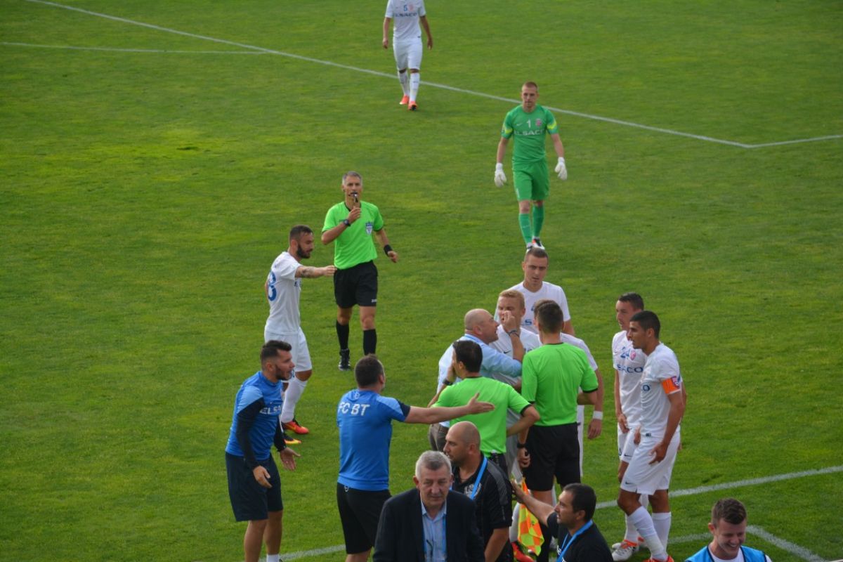 Adrian Comănescu a validat golul, lucru care a provocat un scandal uriaş. Toţi jucătorii FC Botoşani au protestat energic, Leo Grozavu a fugit în cealaltă parte a terenului arătându-i centralului că asistentul ridicase steagul, însă Comănescu a rămas de neclintit. Ba mai mult, i-a dat şi un galben lui Iliev pentru proteste.