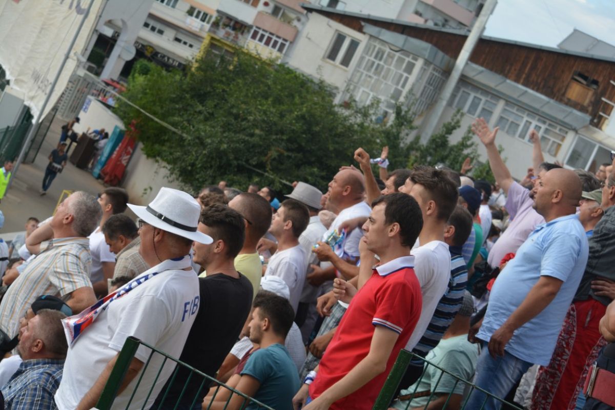 4.000 de oameni fluieră şi scandează împotriva brigăzii de arbitri şi la minute bune după uluitoarea atitudine a arbitrului central: Hoţii! Hoţii! Ruşine! Ruşine.