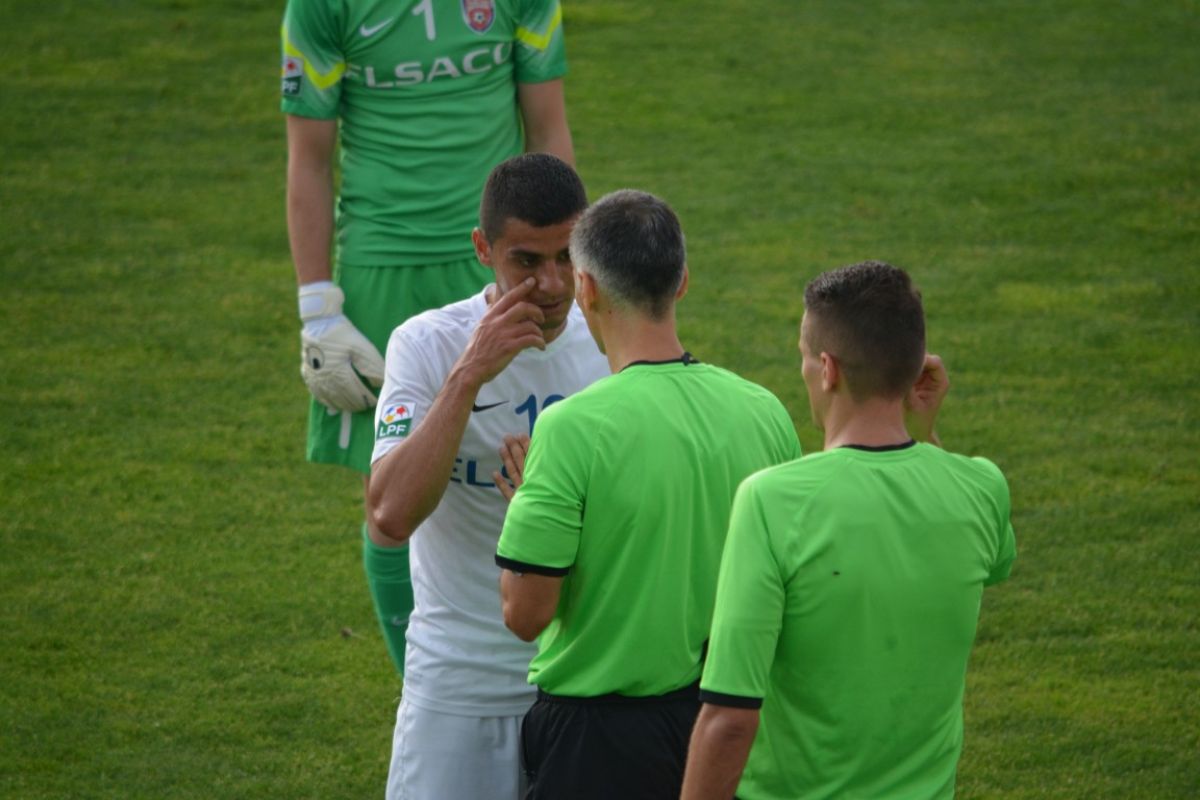 Clujenii au avut o acţiune pe partea dreaptă, asistentul Florin Neacşu a ridicat steagul, jucătorii botoşăneni s-au oprit din alergare ori sau scăzut mult ritmul, însă centralul Adrian Comănescu din Vâlcea s-a făcut că nu vede semnalizarea tuşierului. Acesta a continuat să alerge cu steagul ridicat şi când a văzut că arbitrul central nu îl bagă în seamă a coborât steagul, iar oaspeţii au deschis scorul prin Jakolis, care a rămas singur cu portarul în condiţiile date.