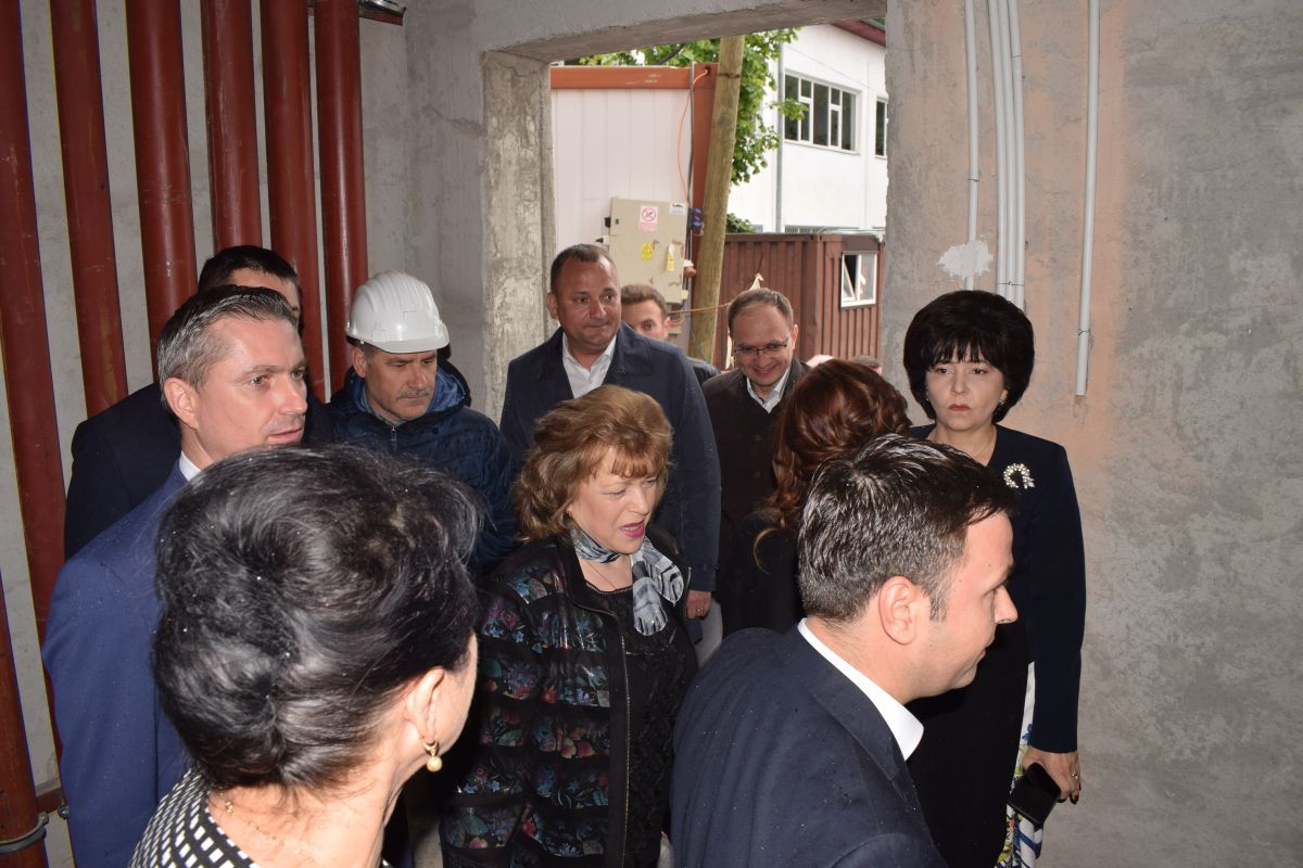 Delegația oficială care îl însoțea pe vicepremier a ajuns la etajul 1 al clădirii deja construită unde, pe pereți au fost aliniate schițe despre cum urmează să arate unitatea medicală finanțată prin CNI.