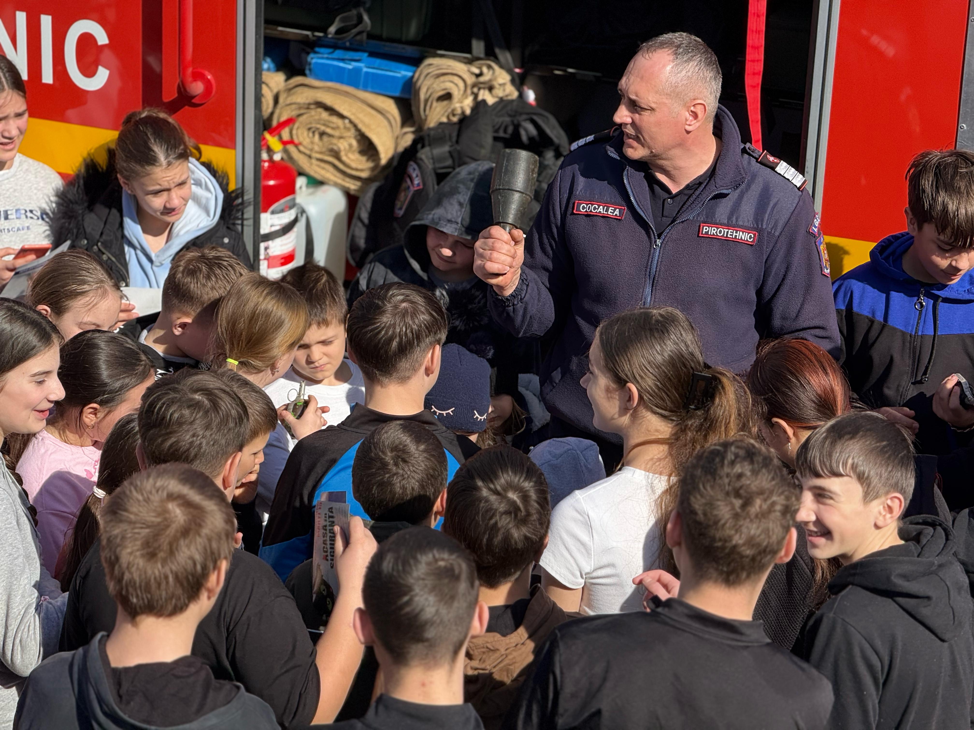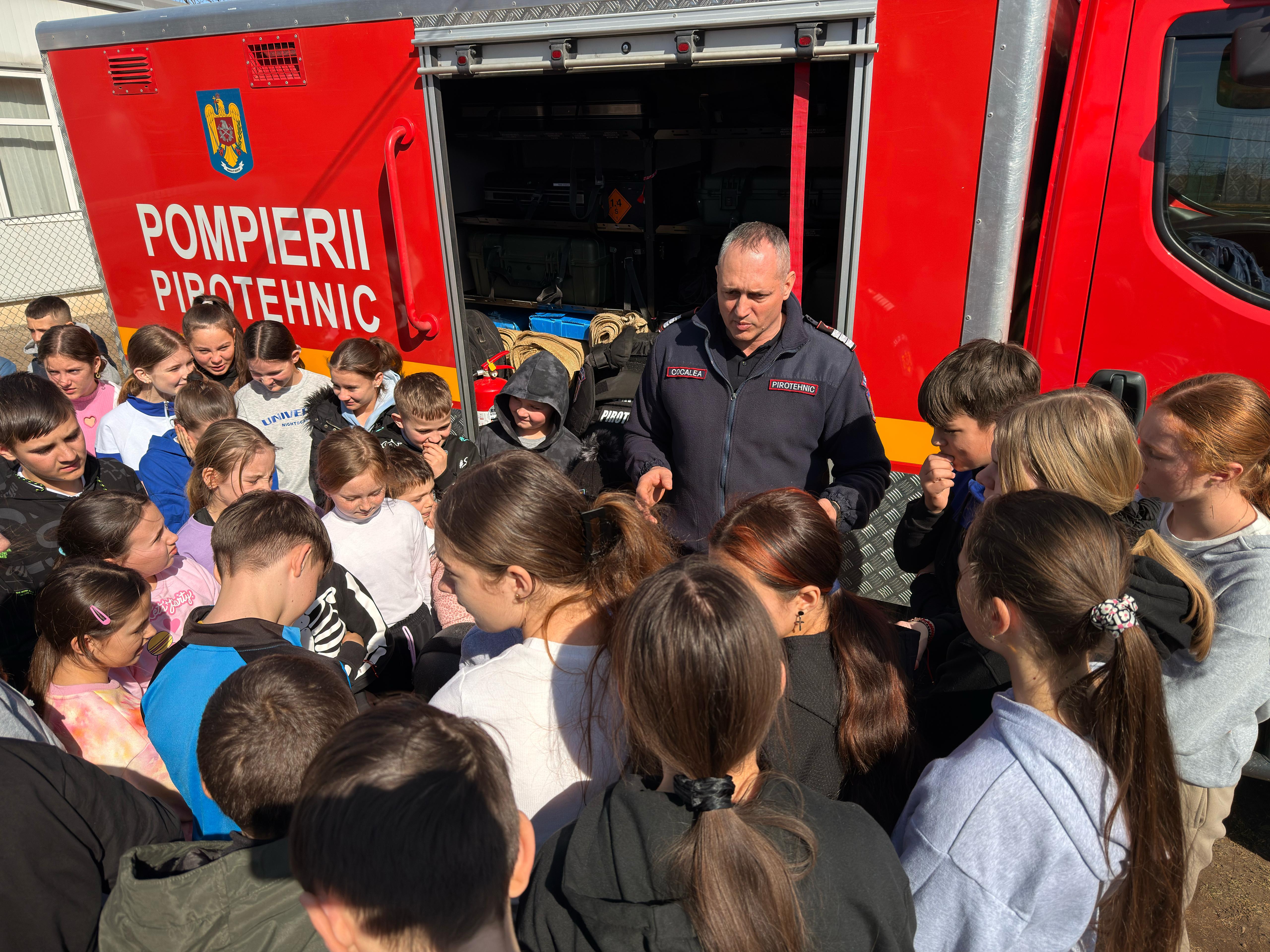 Cu acest prilej, elevii au avut ocazia să vadă mijloacele tehnice și echipamentele folosite de pompieri în misiuni, la fața locului fiind prezente două echipaje din cadrul Detașamentului Botoșani, cu autospeciala hidroperforare și pirotehnică.