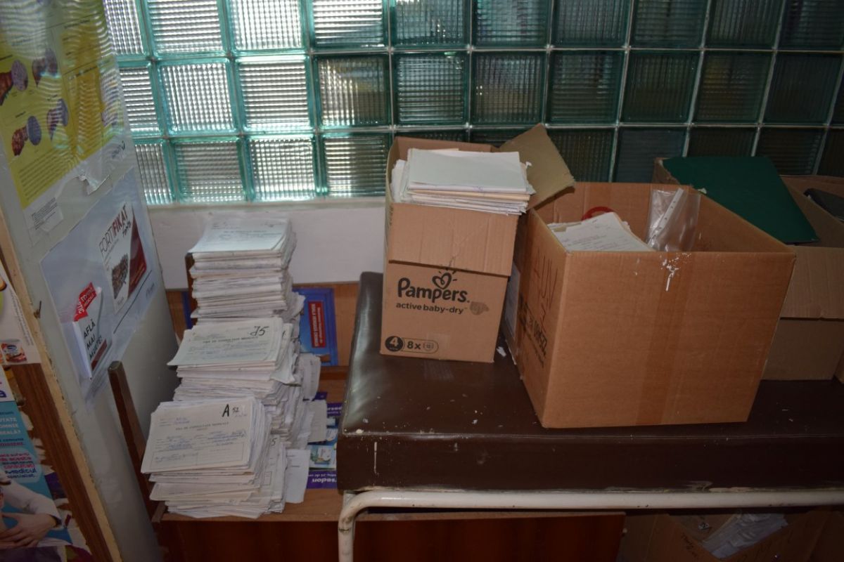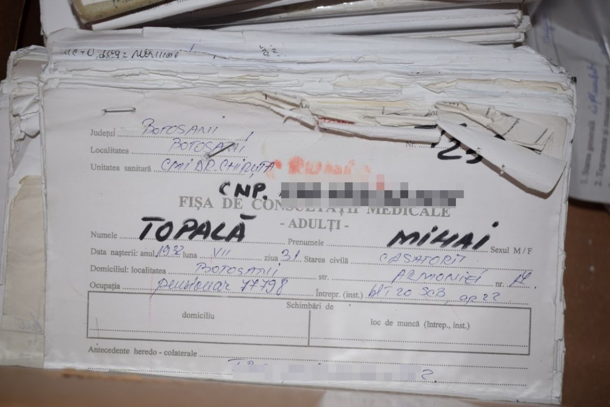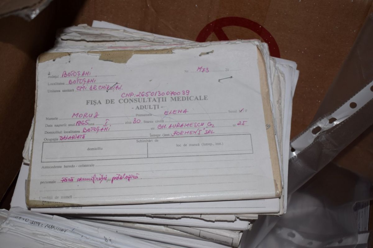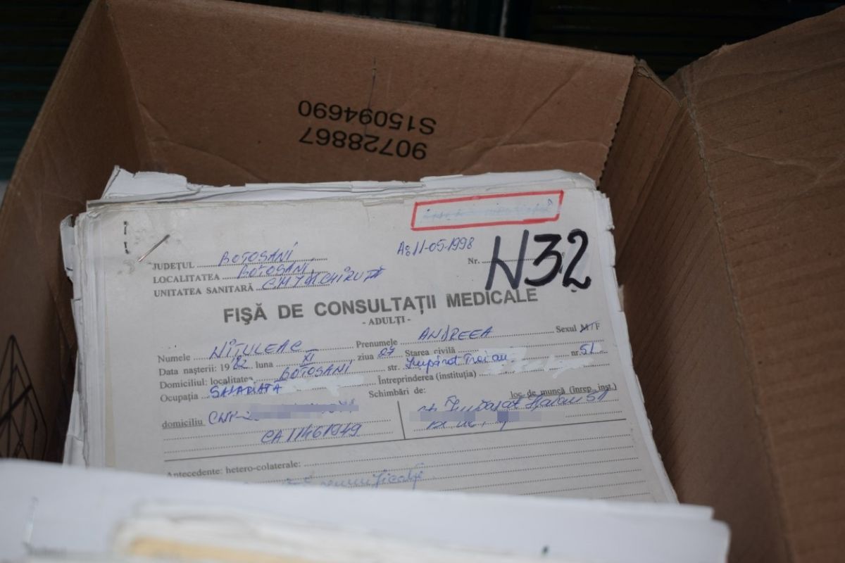 Apoi au văzut lângă ușa cabinetului puse unele peste altele, sau în cutii toate fișele persoanelor care au apelat la acest medic de familie de-a lungul anilor. Date cu caracter personal, adrese, CNP-uri, toate la îndemâna oricui se afla prin zonă.