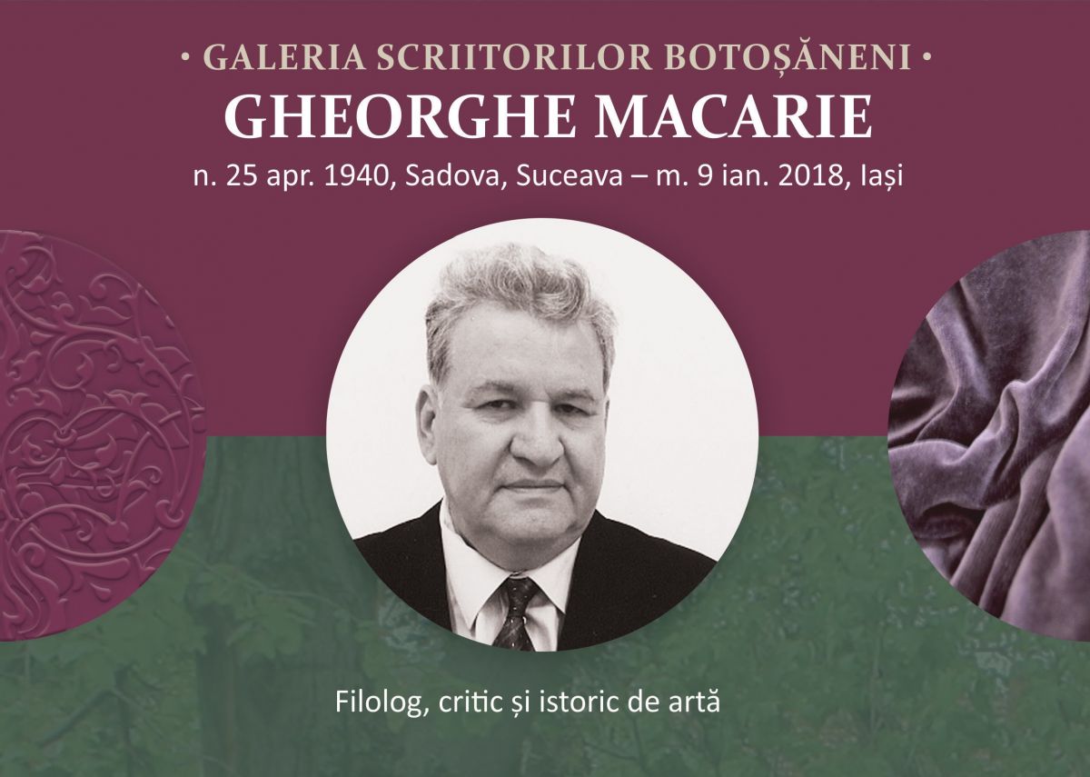 Memorialul Ipotești – Centrul Național de Studii Mihai Eminescu își propune, într-un parteneriat media cu ziarul Botoșăneanul, să prezinte, în ediția de duminică, un nou proiectintitulat Scriitori botoșăneni dincolo de Styx. Astăzi este despre Gheorghe Macarie.