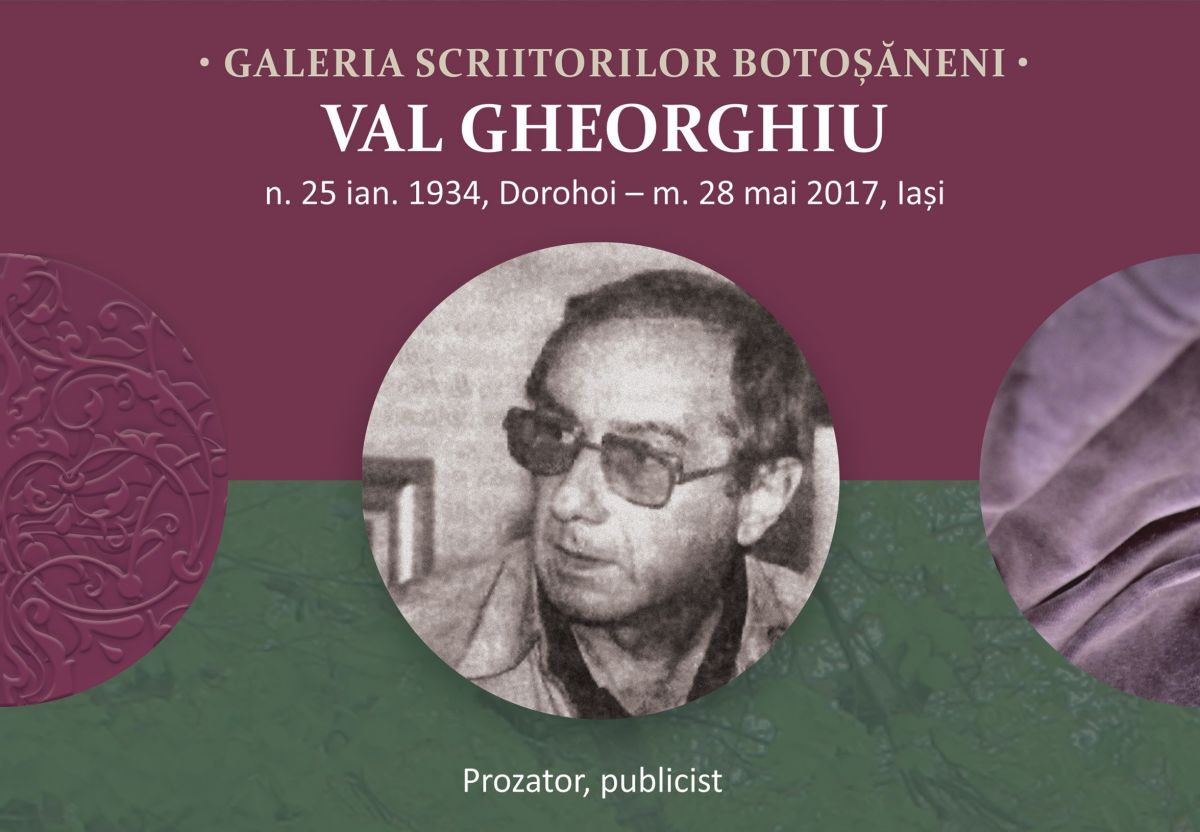 Memorialul Ipotești – Centrul Național de Studii Mihai Eminescu își propune, într-un parteneriat media cu ziarul Botoșăneanul, să prezinte, în ediția de duminică, un nou proiect intitulat Scriitori botoșăneni dincolo de Styx. Astăzi este despre Val Gheorghiu.