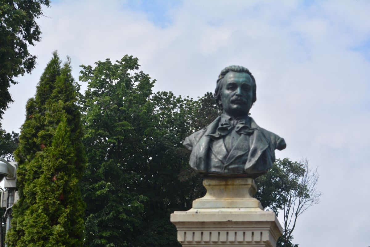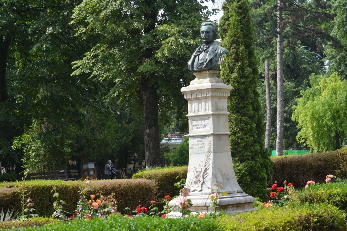 15 iunie, Botoșani. Mireasma teilor în orașul lui Eminescu, doar câțiva trecători prin parcul aproape pustiu și bustul Poetului privind stingher către lumea care se strânge din ce în ce mai mult în ale sale.