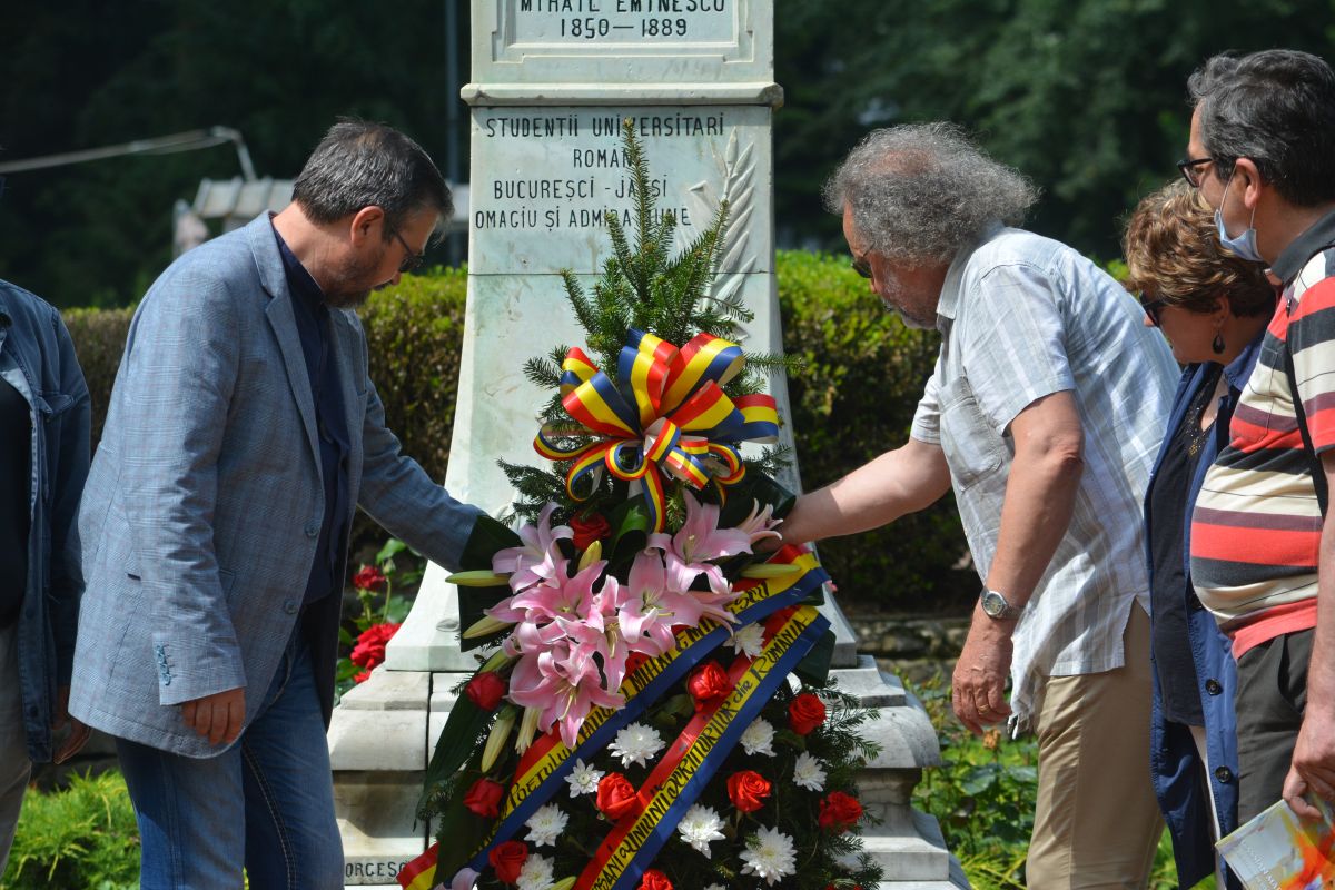 Scriitorii au depus o coroană de flori în memoria poetului Mihai Eminescu, din partea Reprezentanței Botoșani a Uniunii Scriitorilor din România.