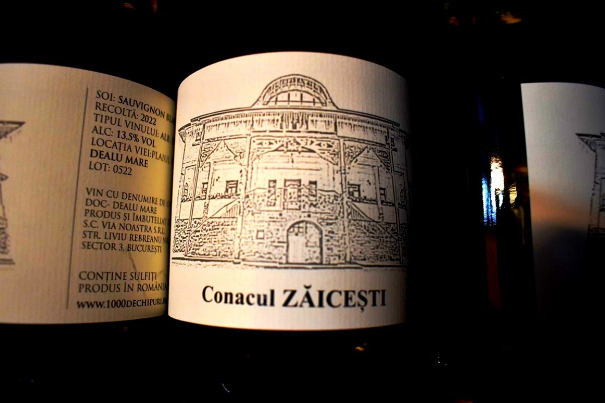 Nu lipsesc nici vinurile personalizate, produse special pentru Conacul Zăicești și care au etichetă ca atare.