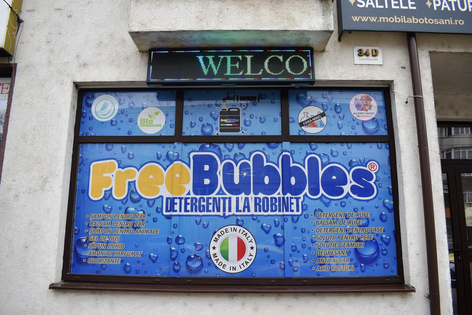 (P) ”Free Bubbles” este un magazin cu un specific aparte pentru Botoșani: de aici se pot achiziționa detergenți la robinet, în orice cantitate dorită de client. Și aceasta întrucât conceptul marketului din Calea Națională 34 D, situat vis-a-vis de Util, este cu totul nou pe piața locală.