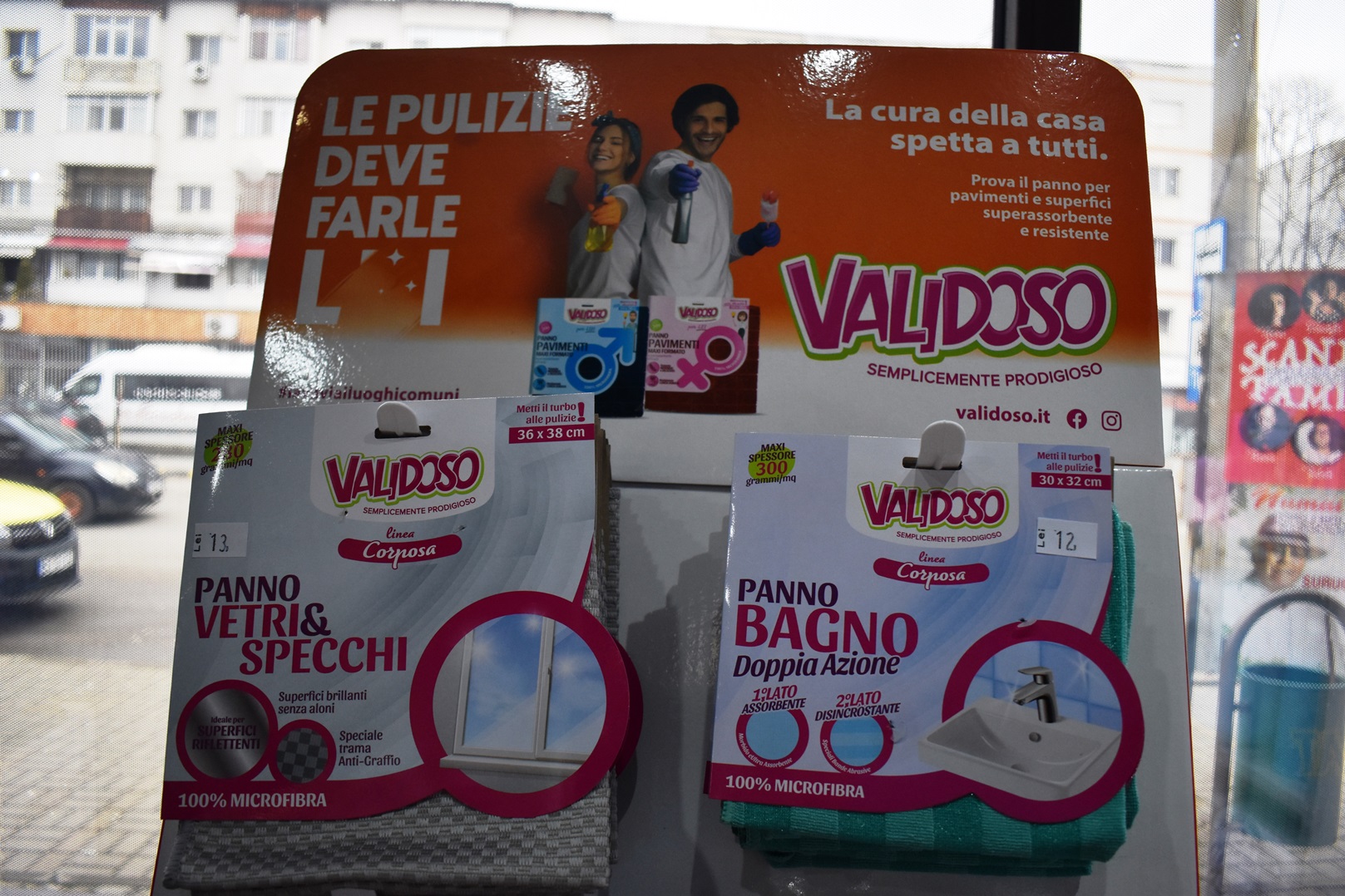 Nu lipsesc nici amoniacul parfumat și odorizantele, bureții și lavetele.