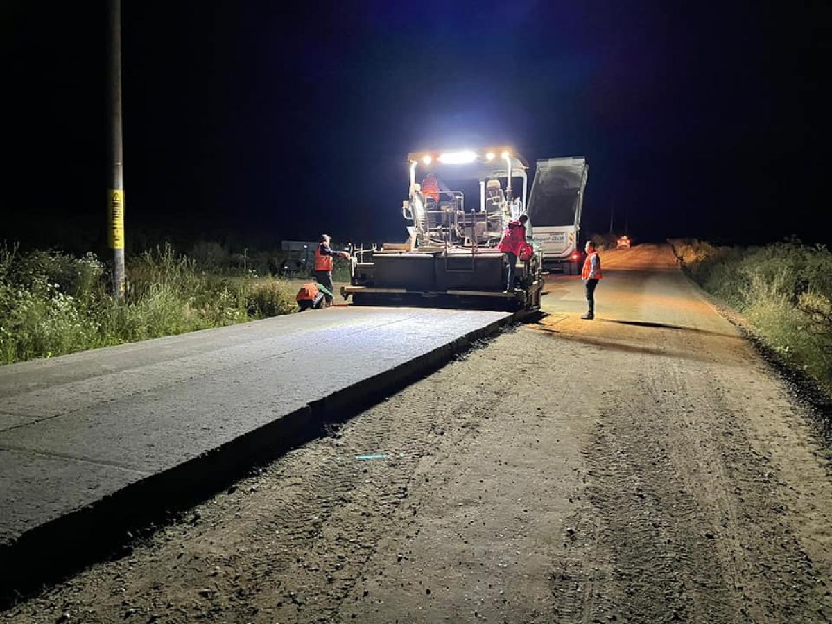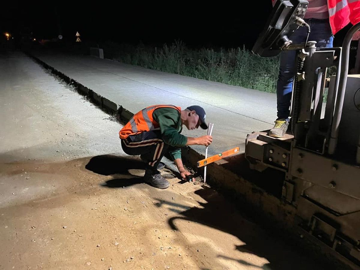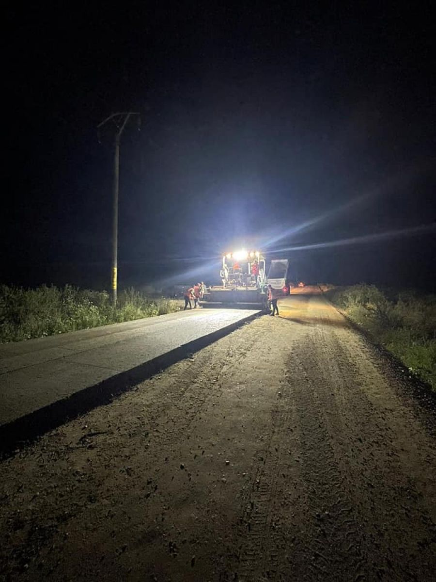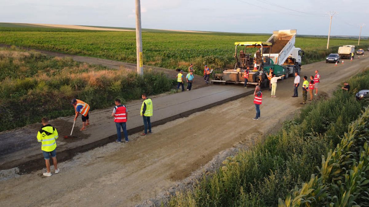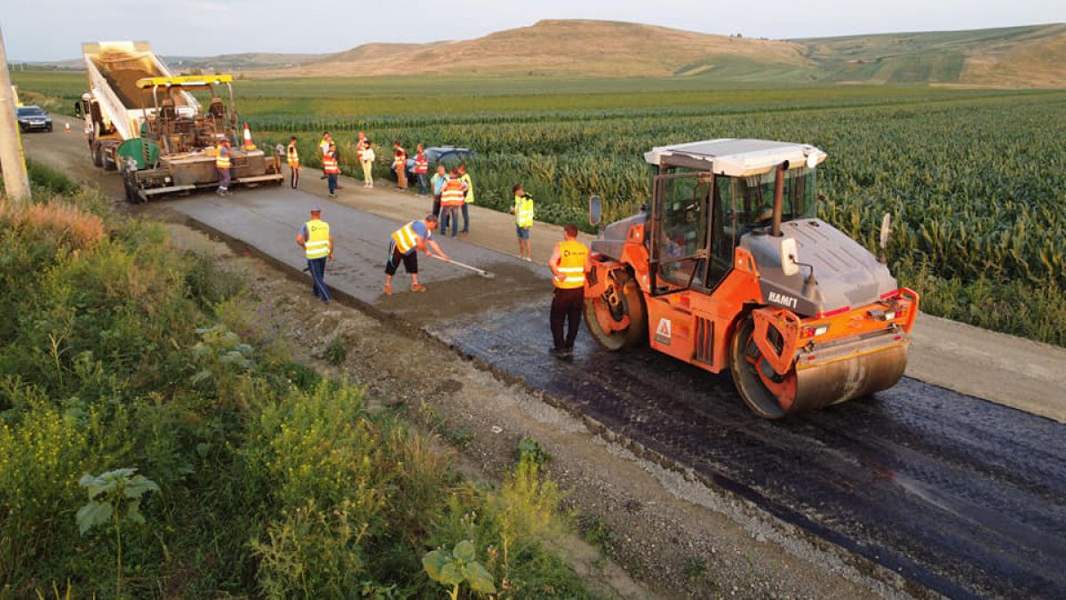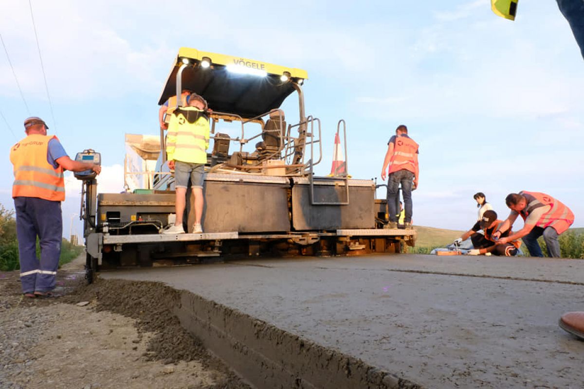 De luni seară s-a început așternerea stratului de balast stabilizat, peste care se vor turna alte două straturi de asfalt.