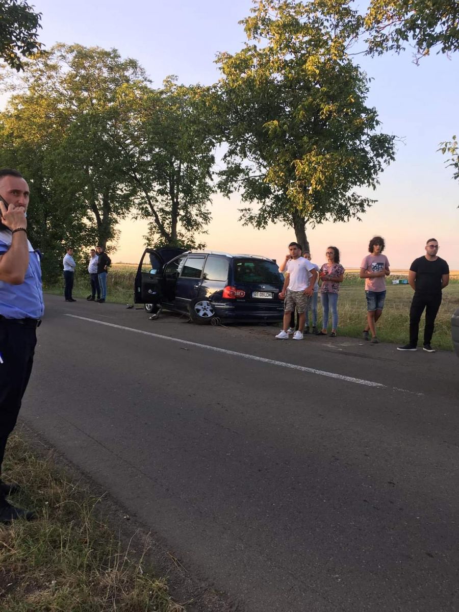 Au fost implicate trei mașini, unul dintre autoturisme ajungând în șanț. Accidentul s-a produs după ce șoferul unui VW Golf s-a angajat în depășirea unei mașini.