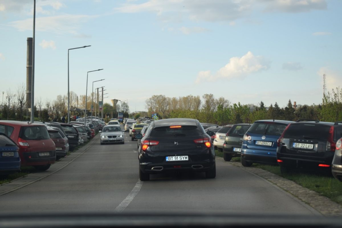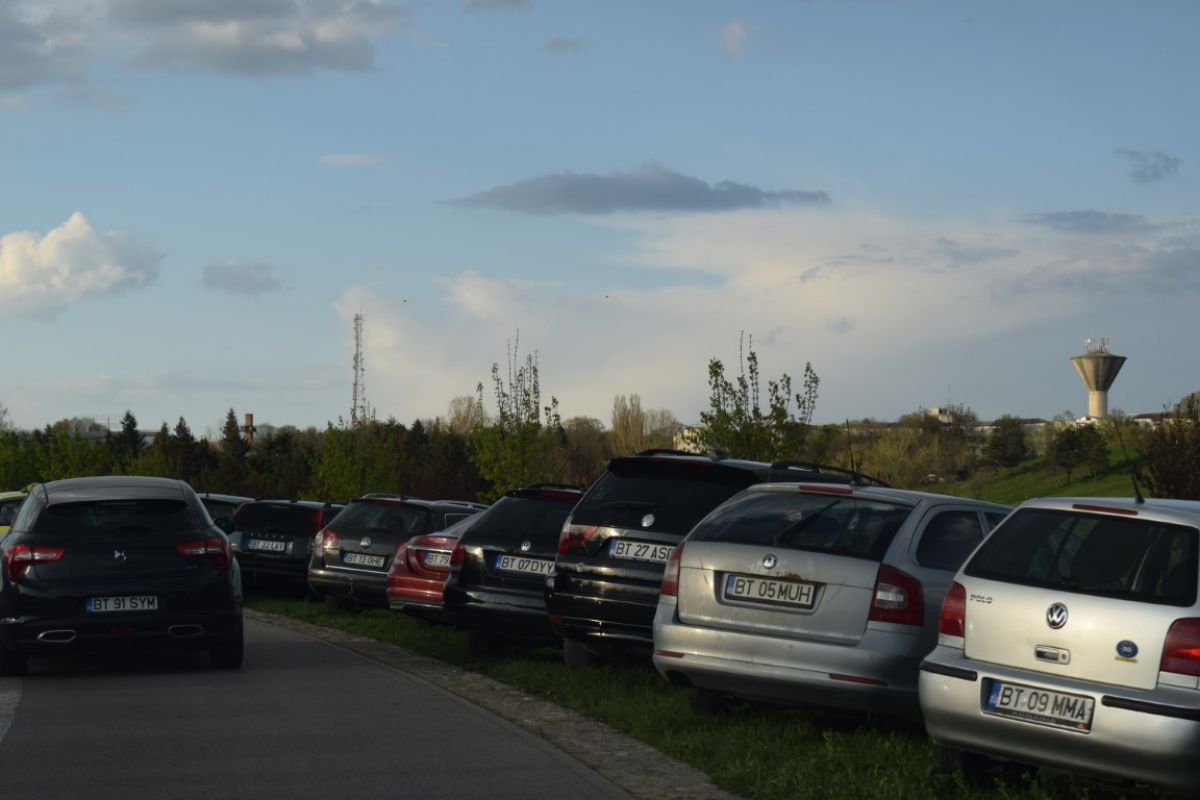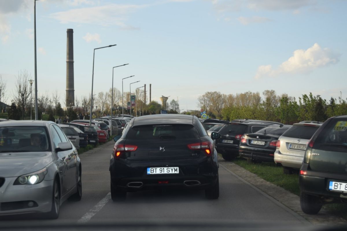 Parcările sunt deja aglomerate de sute de autoturisme. Cele care nu au mai avut loc în spațiile destinate sunt observate pe marginea aleilor de acces.