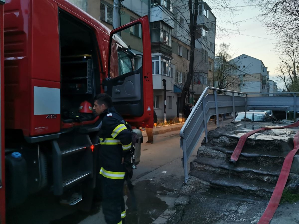 Pompierii au intervenit pentru stingerea incendiului si evacuarea fumului de pe casa scării și de la etajul superior.