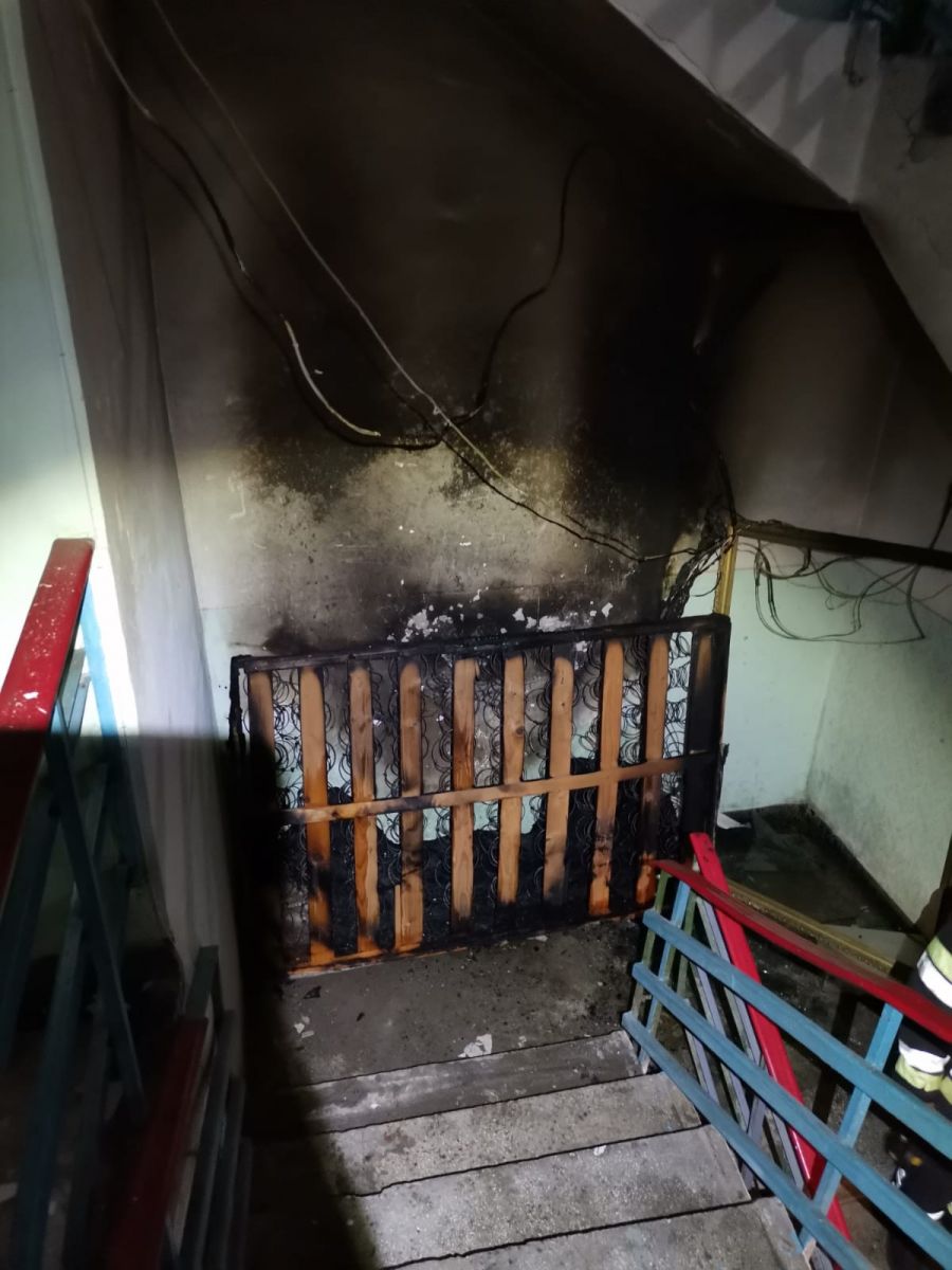 Panică într-un bloc situat pe strada Primăverii din municipiul Botoșani după ce un pat depozitat pe casa scării, între etajele 9 și 10, ardea cu flacără.