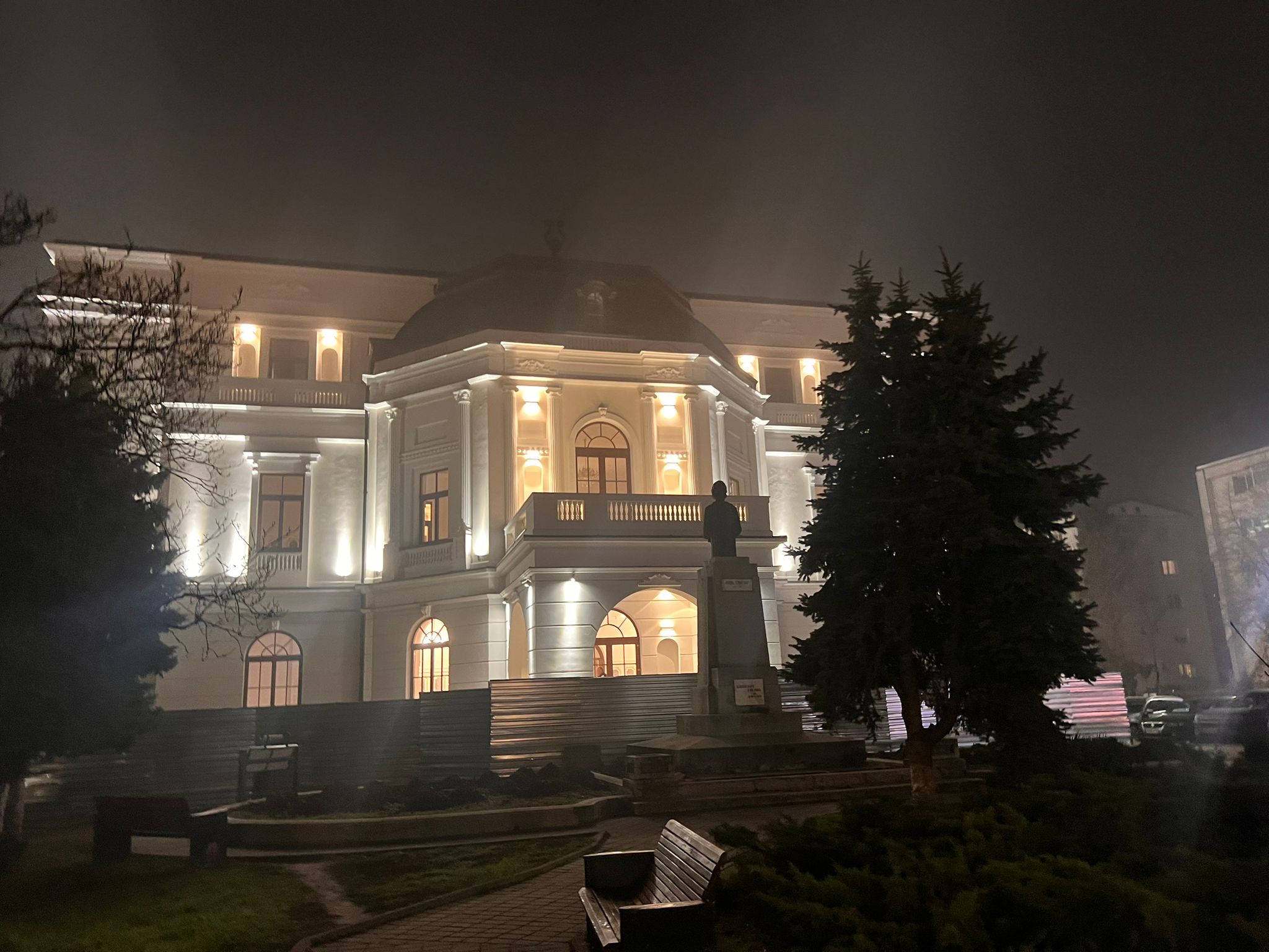 Intrarea invitaților se face pe partea laterală, având în vedere că cea principală va fi refăcută concomitent cu statuia poetului nepereche din fața teatrului.