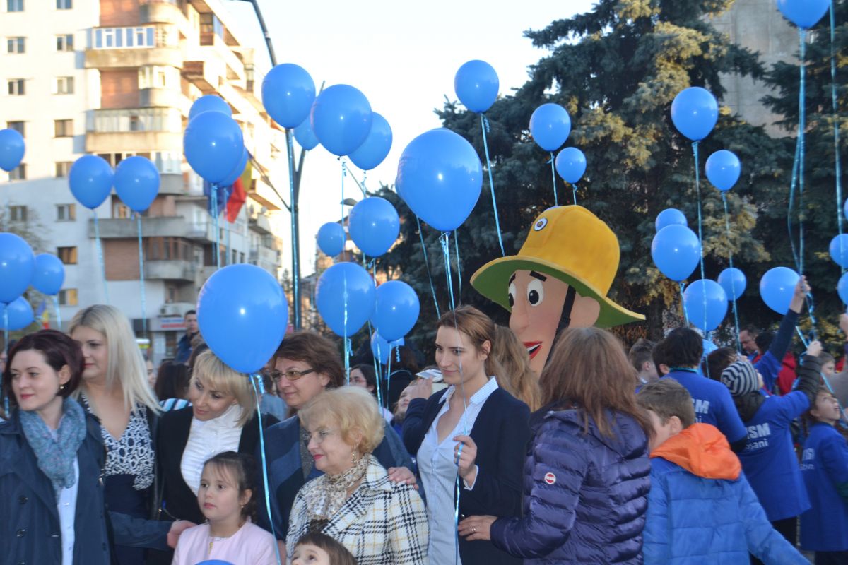 100 de baloane au fost înălțate spre cer, iar sediul municipalității a fost luminat în albastru. Și asta deoarece conștientizarea autismului poartă culoarea albastră.