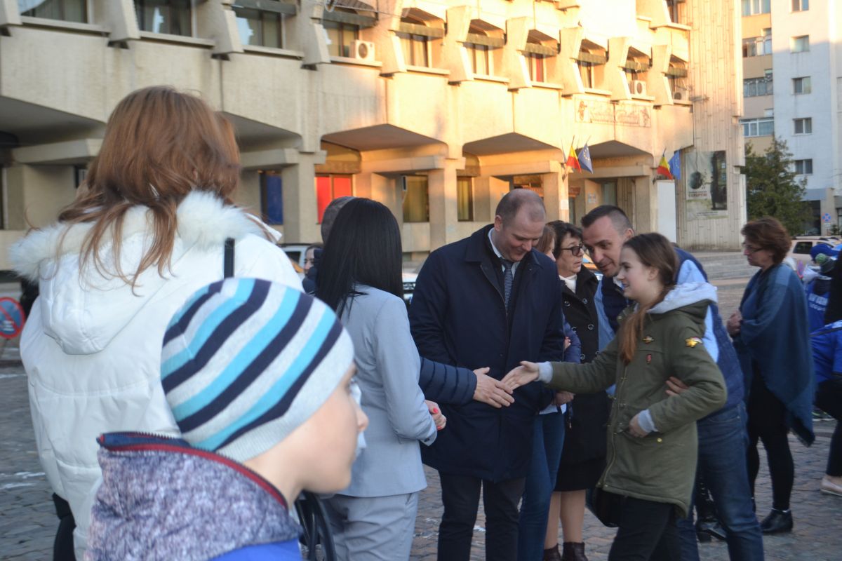 Pentru câteva clipe Piața Revoluției a răsunat de glasurile copiilor prezenți la eveniment. Și micuții au avut parte și de o surpriză întrucât a participat la acțiune și pompierul Sam. După tradiționala poză de grup, copiii au strigat Să fie pace!