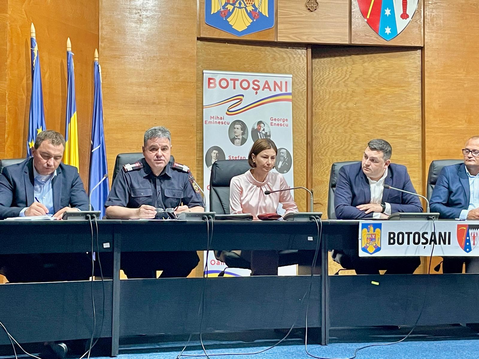 În contextul Codurilor Portocaliu și Galben de instabilitate atmosferică accentuată și inundații, prefectul Sorin Cornilă a convocat, astăzi, membrii Comitetului Județean pentru Situații Urgență (CJSU) Botoșani cu responsabilități în gestionarea fenomenelor hidrometeorologice periculoase, pentru adoptarea unor măsuri în vederea prevenirii apariției unor situații de urgență.