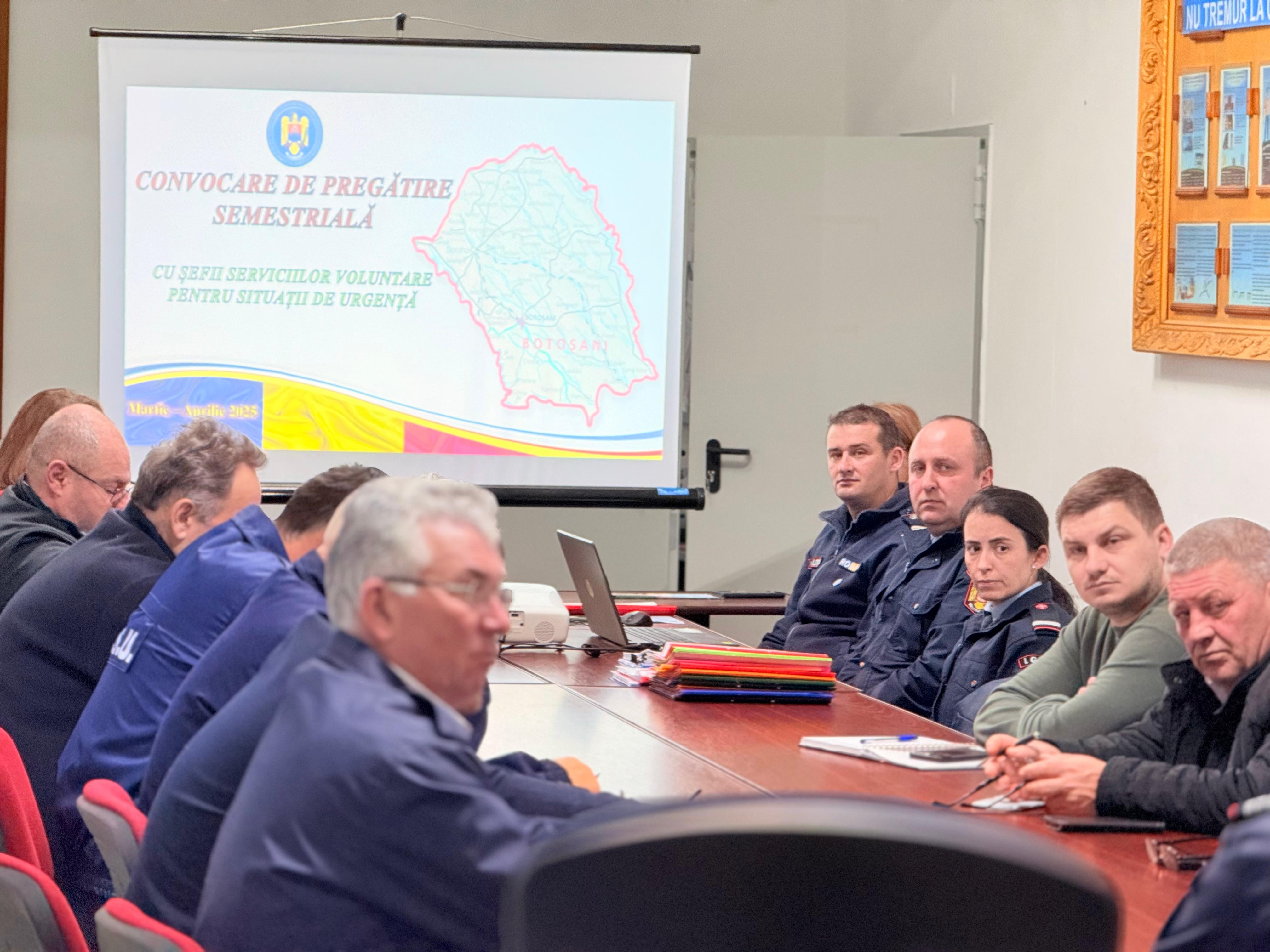 Ședințele, organizate pe mai multe centre, în baza Planului de pregătire în domeniul situațiilor de urgență, aprobat prin Ordin al Prefectului, s-au desfășurat la Primăriile Dorohoi, Flămânzi, Casa de Cultură „Eugen Neculau” Ungureni, Liceul „Demonstene Botez” Trușești și Inspectoratul pentru Situații de Urgență „Nicolae Iorga” al Județului Botoșani.
