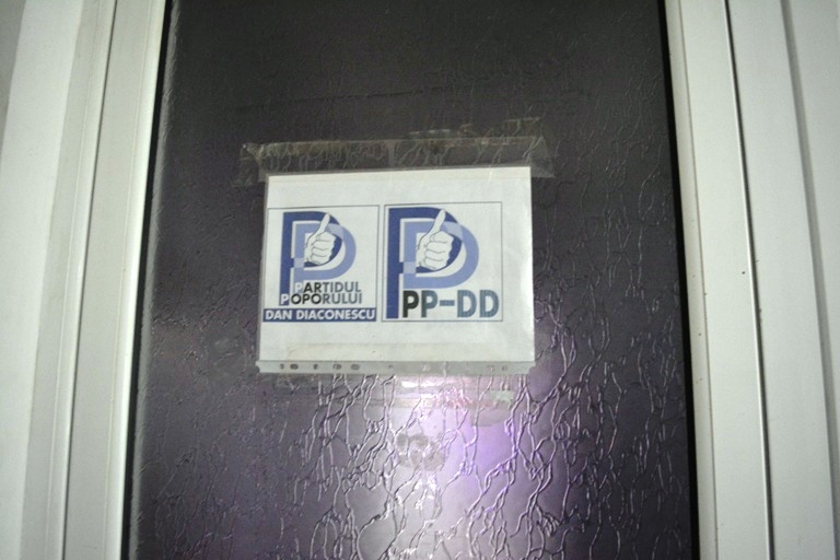 Așadar, UNPR a fuzionat cu PP-DD și s-a decis mutarea sediului în cel al fostului partid controlat de OTV-istul Dan Diaconescu. Acesta se află la intersecția Marchian – Cuza Vodă, iar marți la amiază era la fel de pustiu ca și fostul sediu al UNPR. Avea o siglă cu UNPR, o alta, mult mai redusă ca dimensiuni cu PP-DD și... nici un om.