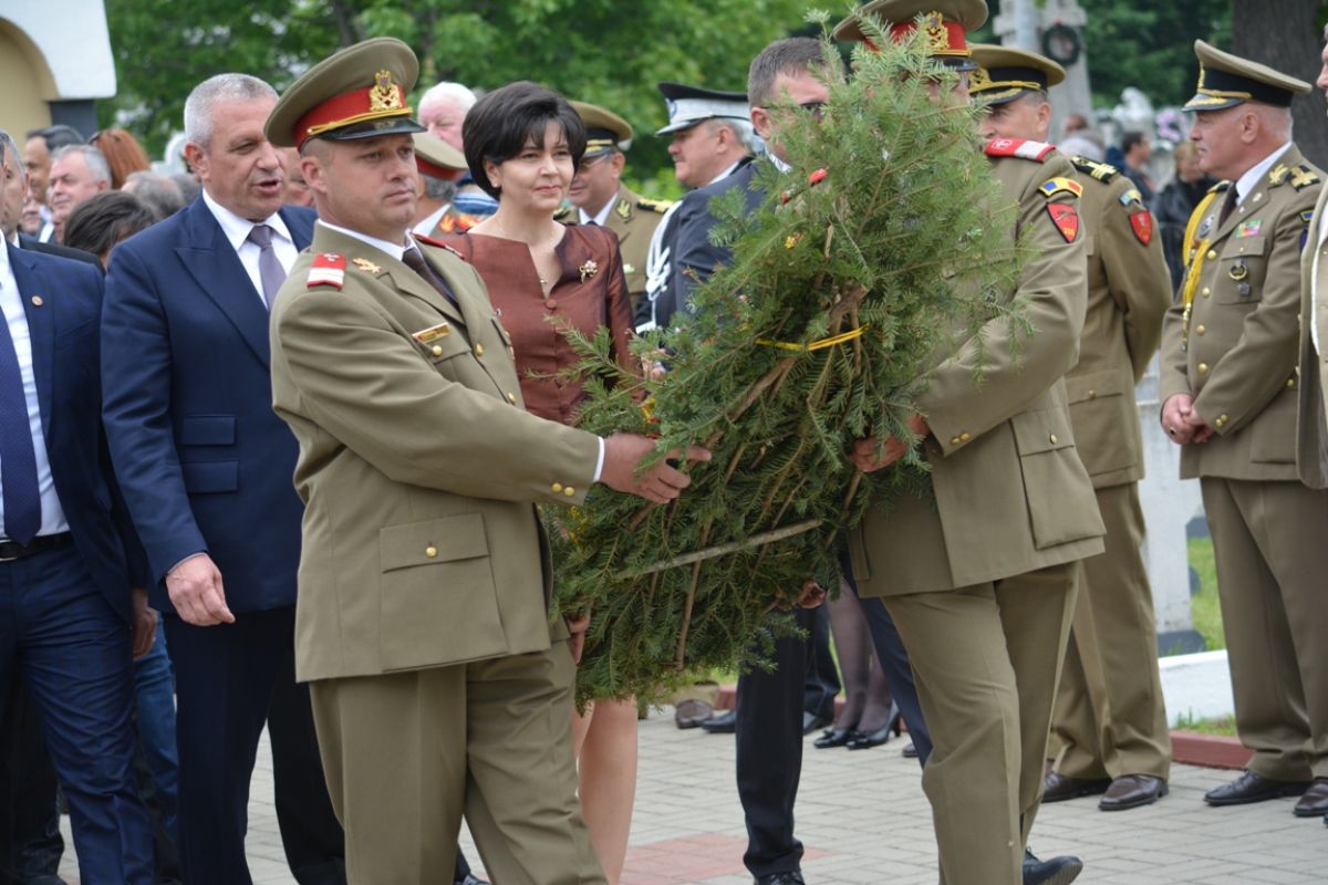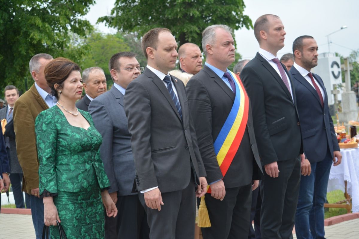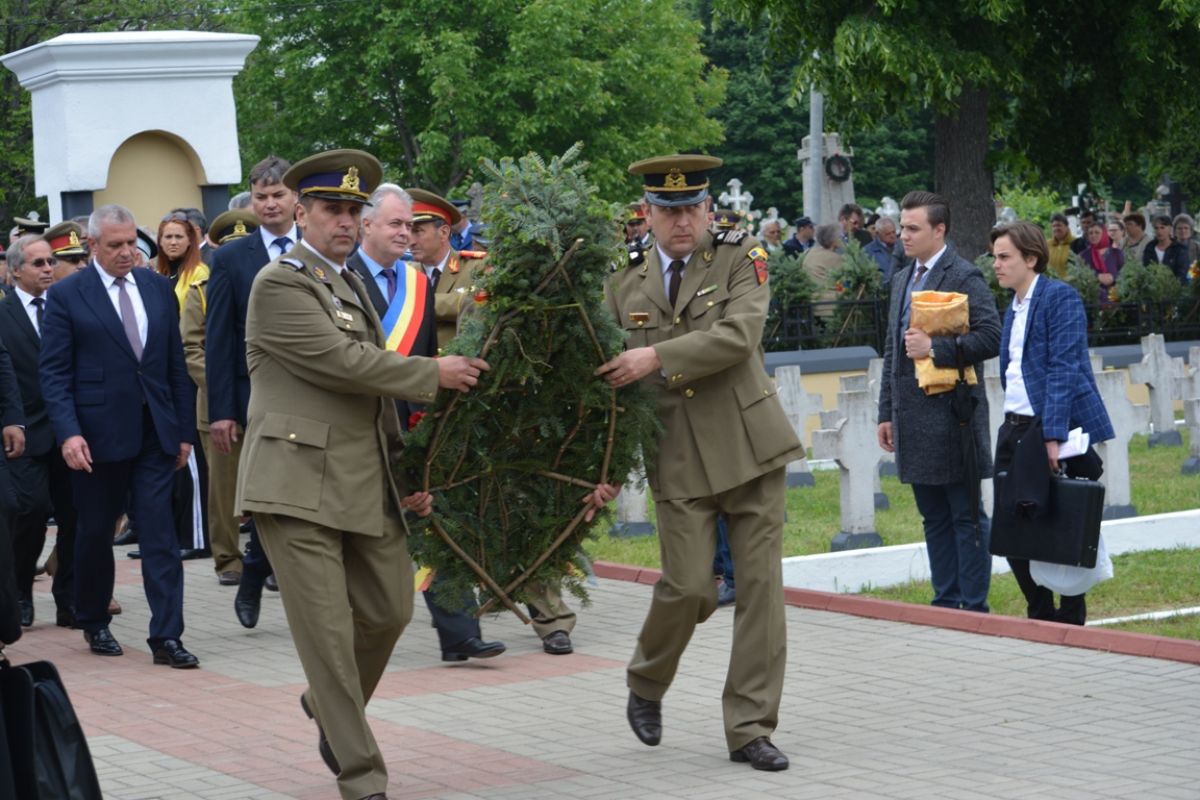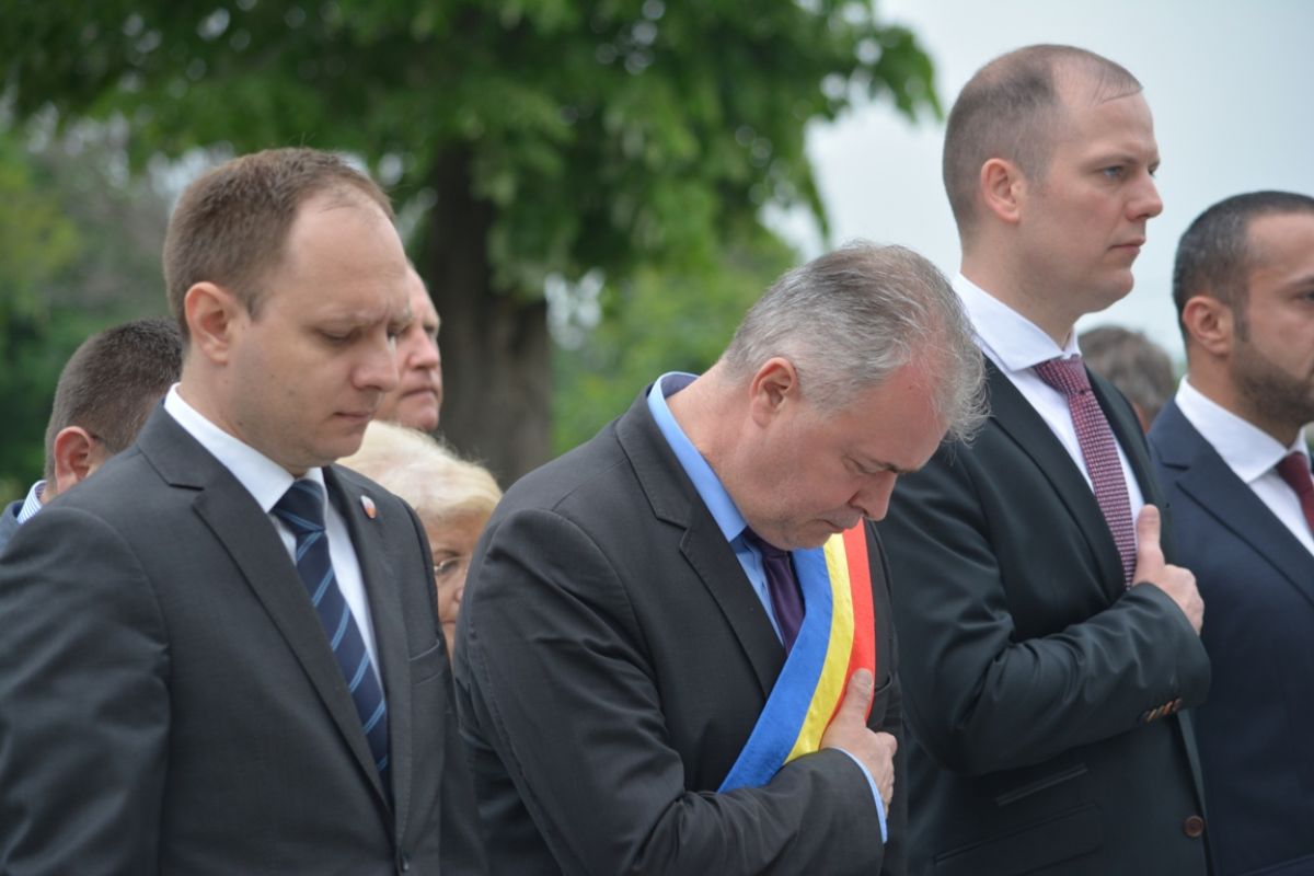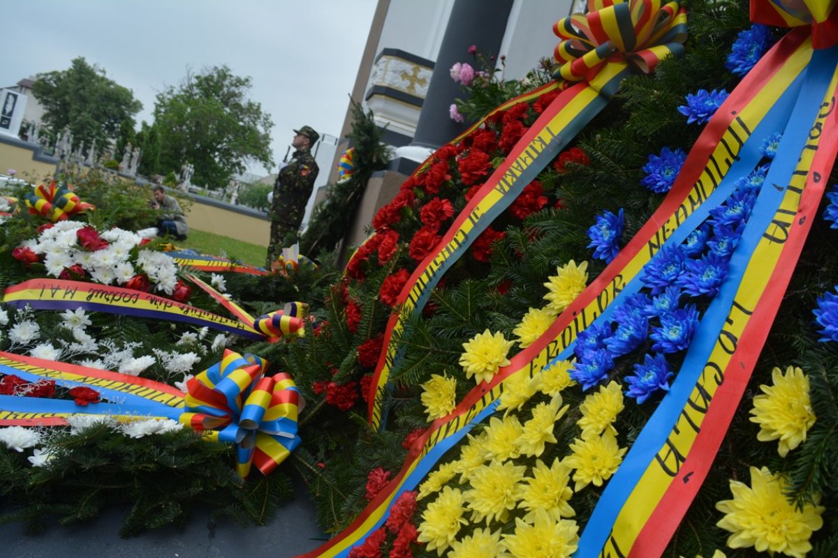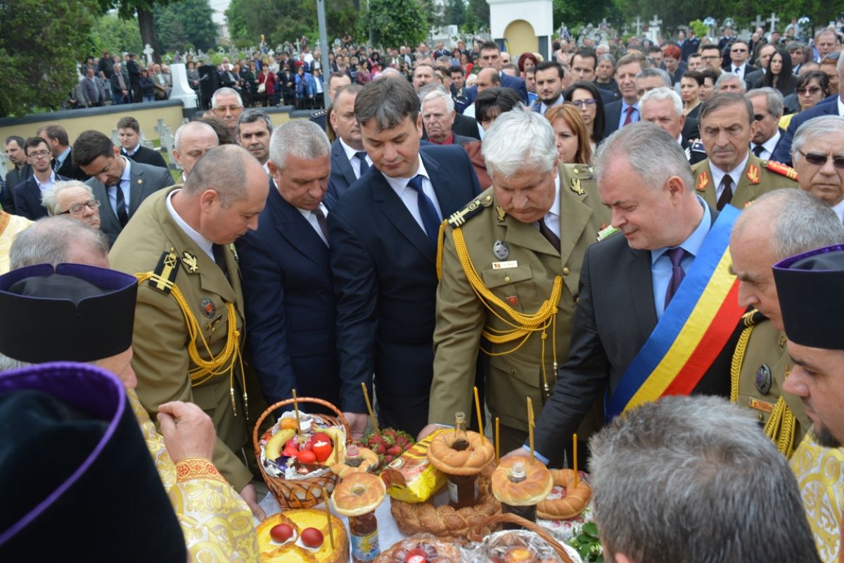 Începută la ora 12:00, ceremonia a durat în jur de trei sferturi de oră, răstimp în care un sobor de 13 preoţi condus de părintele protopop Lucian Leonte a oficiat o slujbă de pomenire şi s-au depus zeci de coroane.