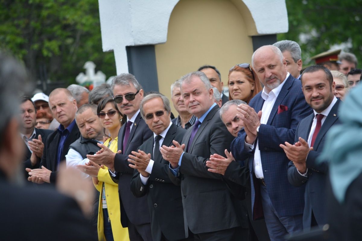 Coborâţi din maşini de teren şi automobile de lux s-au îngrămădit la propriu în Cimitirul Eroilor, în timp ce oameni care nu vin acolo doar o dată în an, aşa cum fac majoritatea celor din administraţie şi politică, au fost nevoiţi să stea prin afară. Au urmărit festivitatea de peste grad, printre cruci şi copaci.