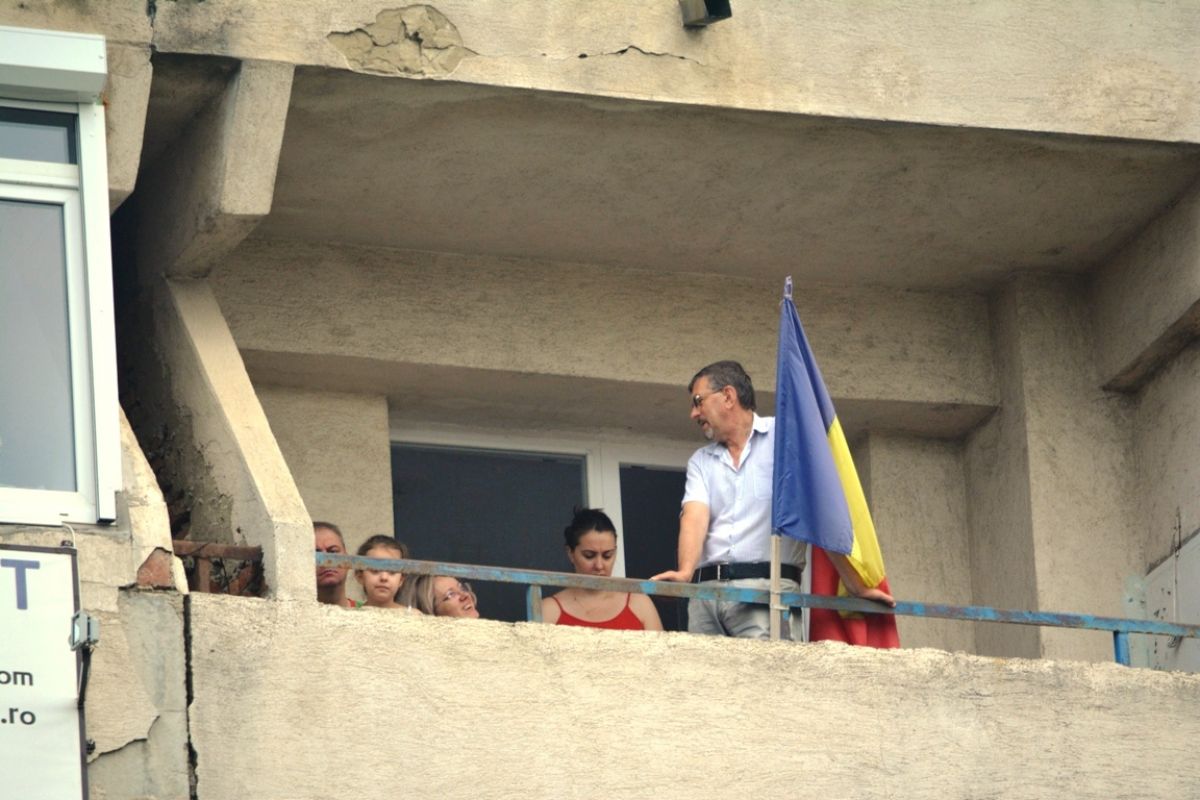 După ce şi-a citit alocuţiunea acesta a salutat călduros, ducând mâna la inimă, câţiva botoşăneni care urmăreau ceremonialul dintr-un bloc apropiat, în care a locuit şi actualul primar.