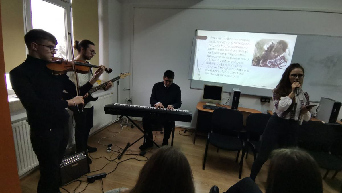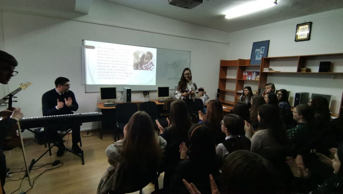 Audiența a fost impresionată de piesele despre iubire interpretate de elevele Andreea Doroftei, Andreea Luminița Liță și Morariu Lorena acompaniate de invitații speciali Teo Humă (Chitară), student al Facultății de Muzică „George Enescu” Iași, Marius Podaru (Vioară) elev al Liceului de Artă „Ștefan Luchian” Botoșani și coordonatorul întregii activități prof. Cezar Grădinaru (pian). Piesele interpretate în cadrul activității sunt piese consacrate din repertoriul românesc: „Să nu uităm nicicând să iubim trandafirii”, „Te iubesc” și „Of, inimioară”.