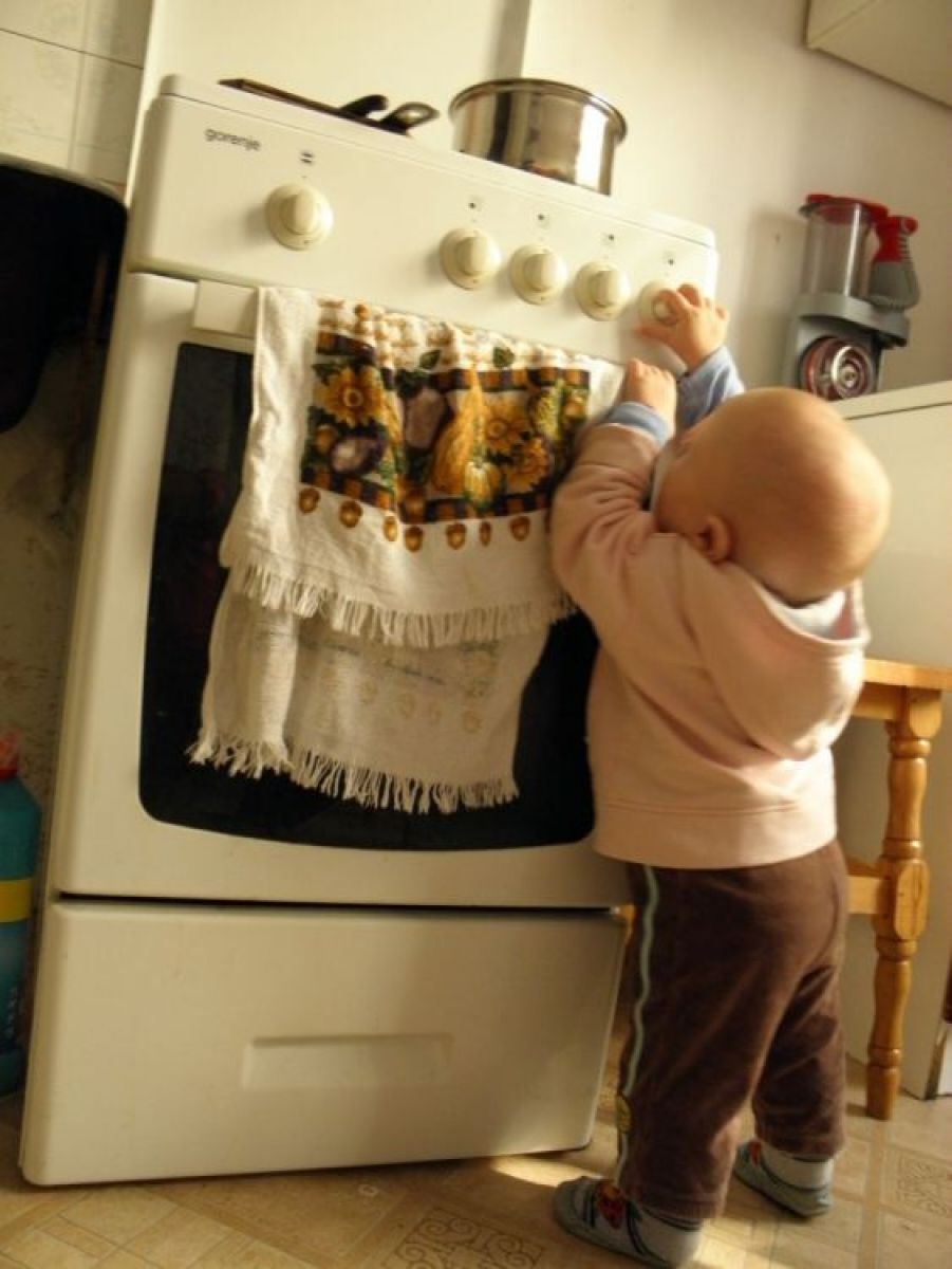 Ţineţi copilul departe de locul unde gătiţi – aragaz, sobă. Nu lăsaţi la îndemâna copilului vase cu lichid fierbinte.