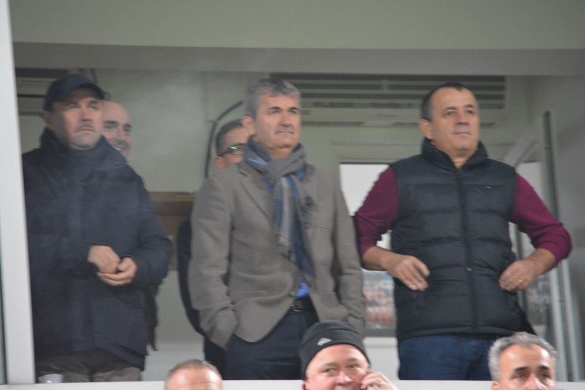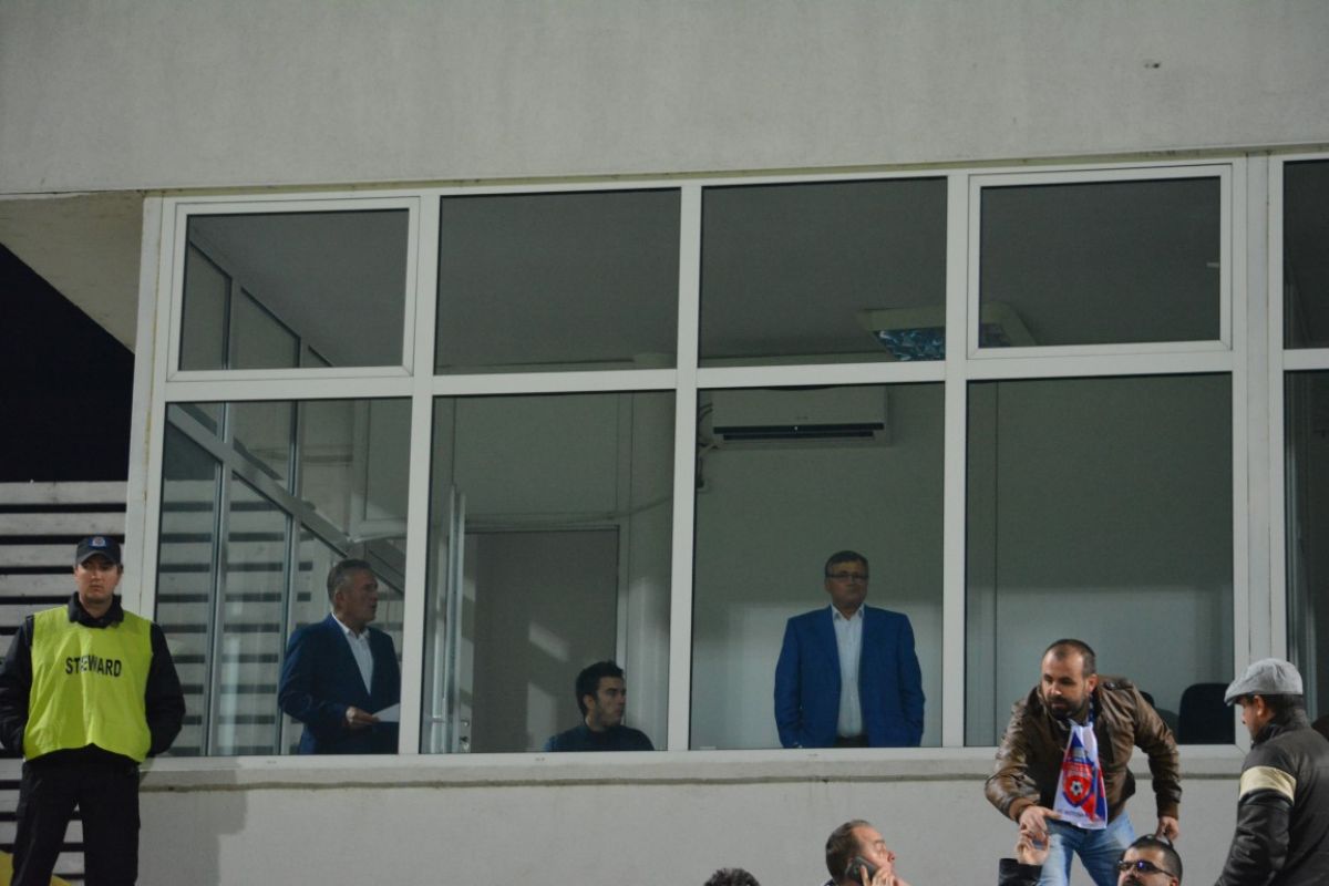 Aici prezenţa politicienilor este una relativ slabă, deputatul Cristian Roman fiind însă nelipsit, ca de altfel la aproape toate partidele. Şi-a făcut apariţia Corneliu Popescu, senator plecat de la PP-DD, care a aşteptat vreo zece luni până să fie reprimit în PNL. Cu cinci minute înainte de start loja municipalităţii avea un singur loc ocupat, de către Costel Lupaşcu, directorul care nu prea este clar dacă mai este sau nu director la Casa de Asigurări de Sănătate. Ca de obicei, Valeriu Iftime, preşedintele consiliului de administraţie, urmăreşte partida de la loja rezervată de Elsaco, acolo unde se află şi fratele său, Constantin Iftime, scriitor. (S.B.)