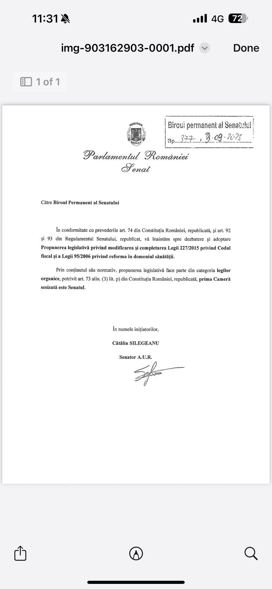 Proiectul de lege inițiat de senatorul Cătălin Silegeanu și înregistrat pe 3 septembrie este atașat mai jos.
