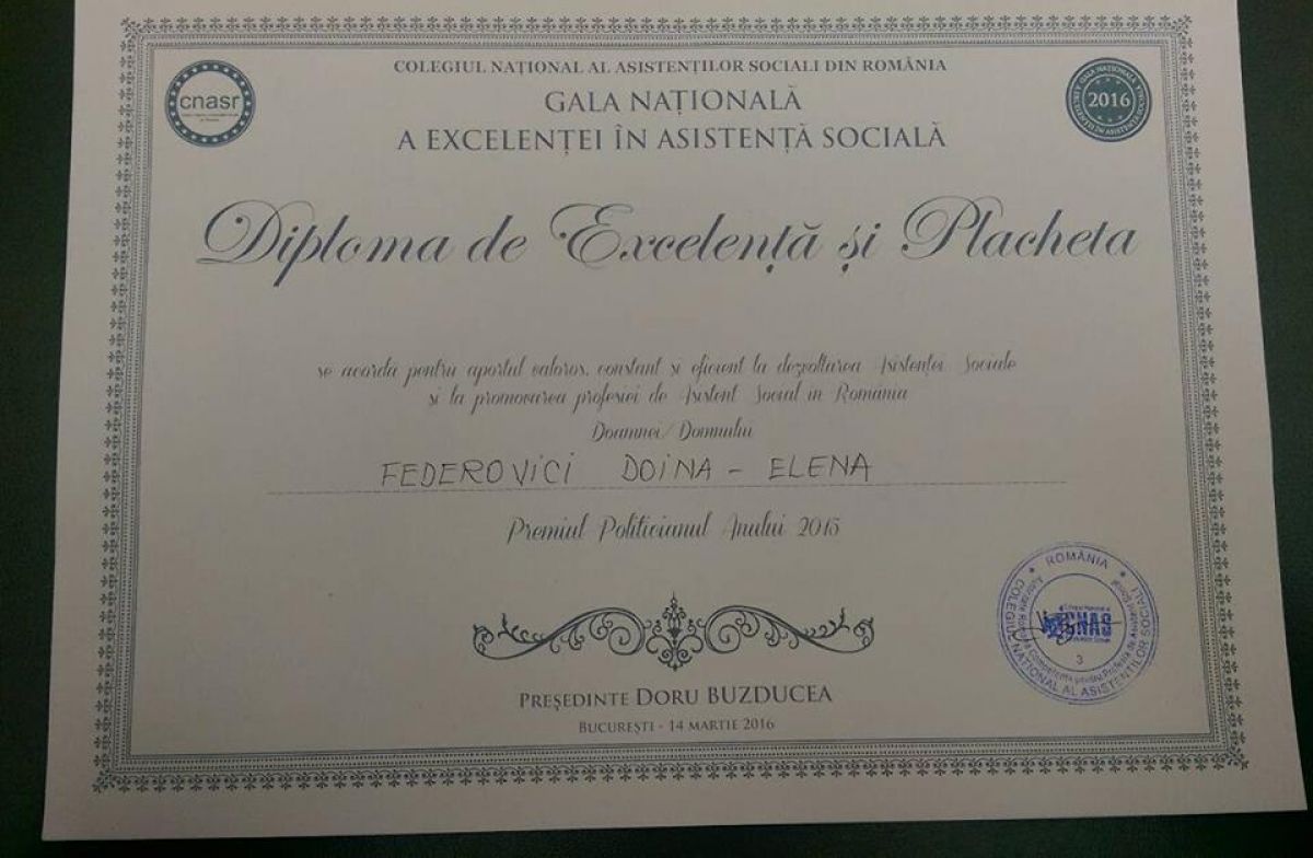 În cadrul acestui eveniment s-au acordat premii pentru 18 secțiuni, fiecare secțiune având 3 finaliști desemnați în urma votului online și a portofoliului de activități din anul 2015 în sprijinul profesiei de asistent social. Senatorul PSD Doina Federovici a fost declarat POLITICIANUL ANULUI și a concurat în finala galei alături de președintele Comisiei de Muncă din Camera Deputaților, Adrian Solomon și primarul municipiului Oradea, Ilie Bolojan, ducând Botoșaniul pe podiumul excelenței românești.