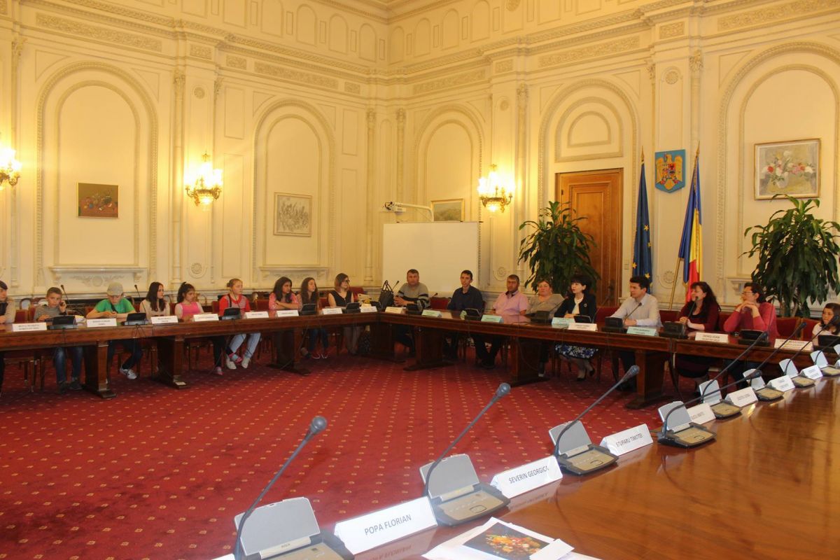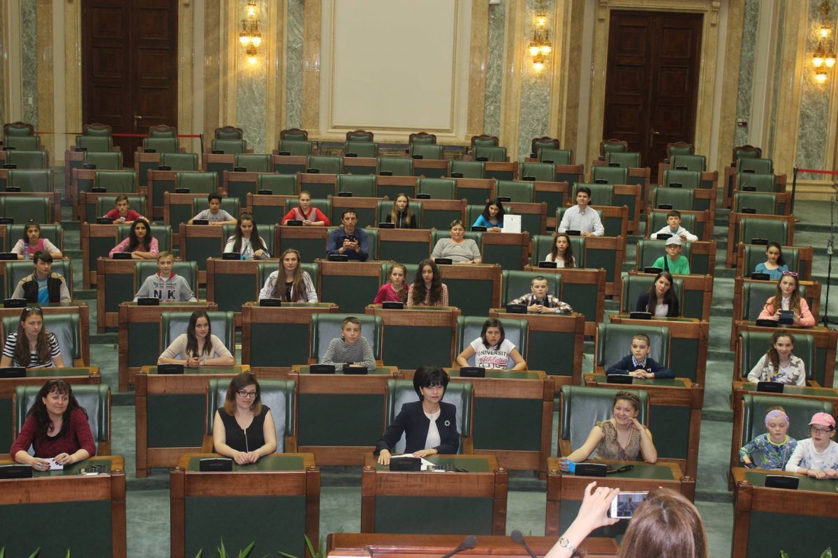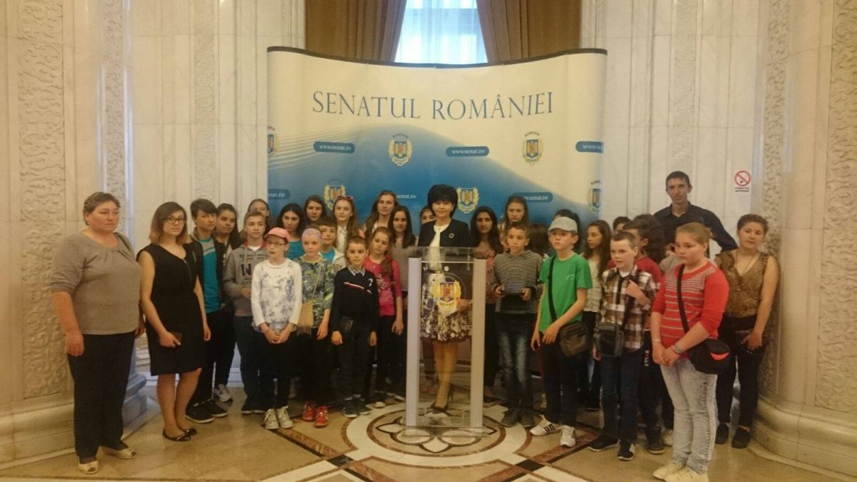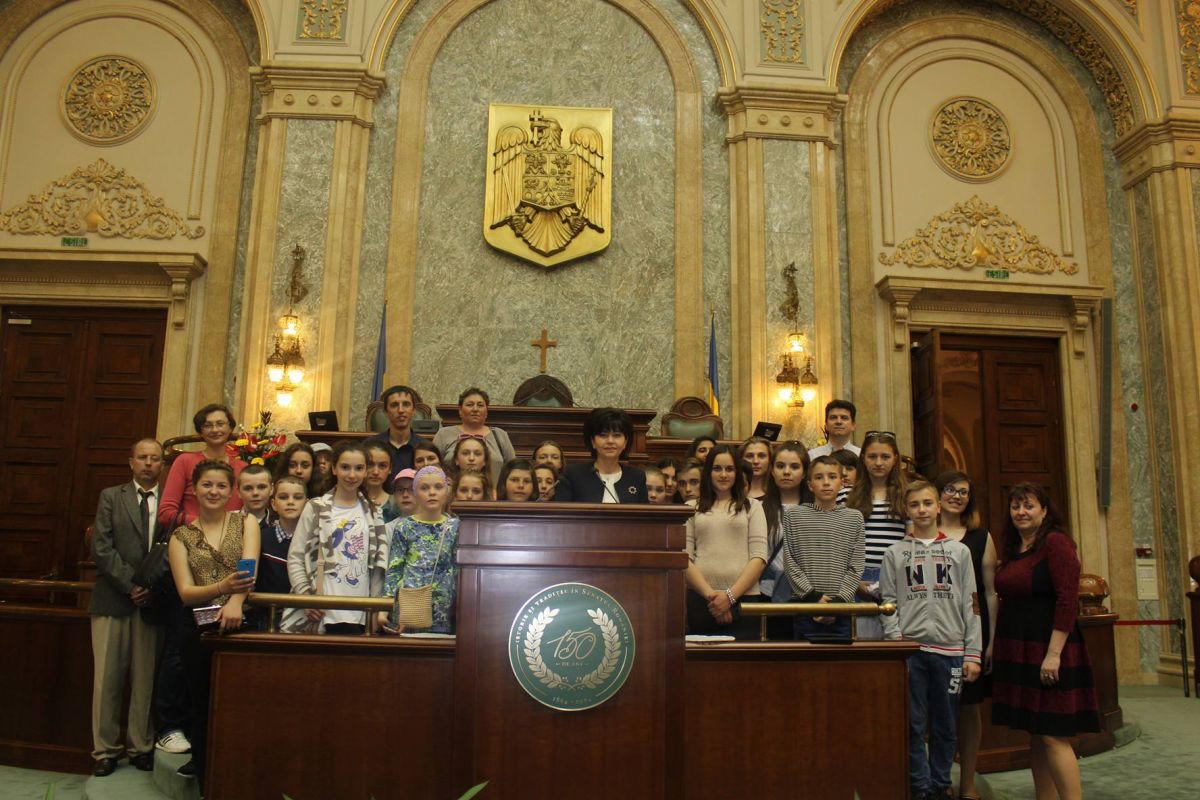 Gazda copiilor a fost senatorul Doina Federovici care i-a însoțit pe tinerii vizitatori în impozantul sediu al legislativului României. Grupul de vizitatori a fost întâmpinat de domnul ministru secretar de stat pentru relația cu Parlamentul, Valentin Iliescu, care le-a vorbit copiilor despre importanța acestei instituții în structura statului.