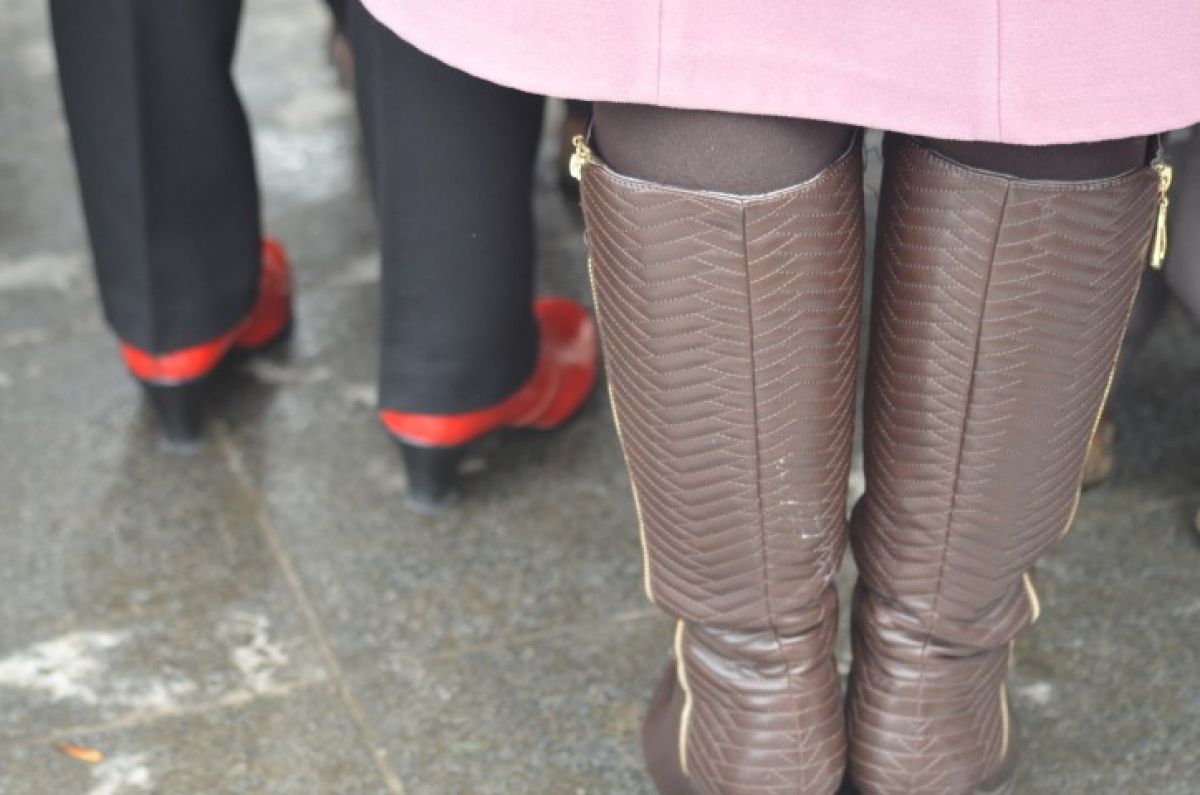 În ciuda gerului tăios, majoritatea dintre politiciene, afaceriste sau directoare au venit cu ciorap fin elegant și rochii sau fuste, la care au adăugat ghetuțe elegante sau cizme. Au predominat blănurile, de toate culorile și modelele, mai ales în rândul doamnelor de vârsta a doua și paltonașele în culori vii, purtate de cele mai tinere. Ținutele au fost completate cu pălării sau tot felul de căciulițe.