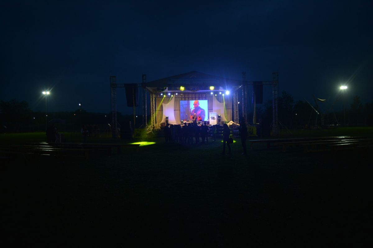 ”Ploaia este de bun augur. Chiar dacă plouă, avem unde să stăm. Și chiar dacă plouă, pe scenă vor veni nume importante și o să vă invit să veniți în față să dansați. E pentru prima dată când avem posibilitatea să dansăm și în ploaie”.