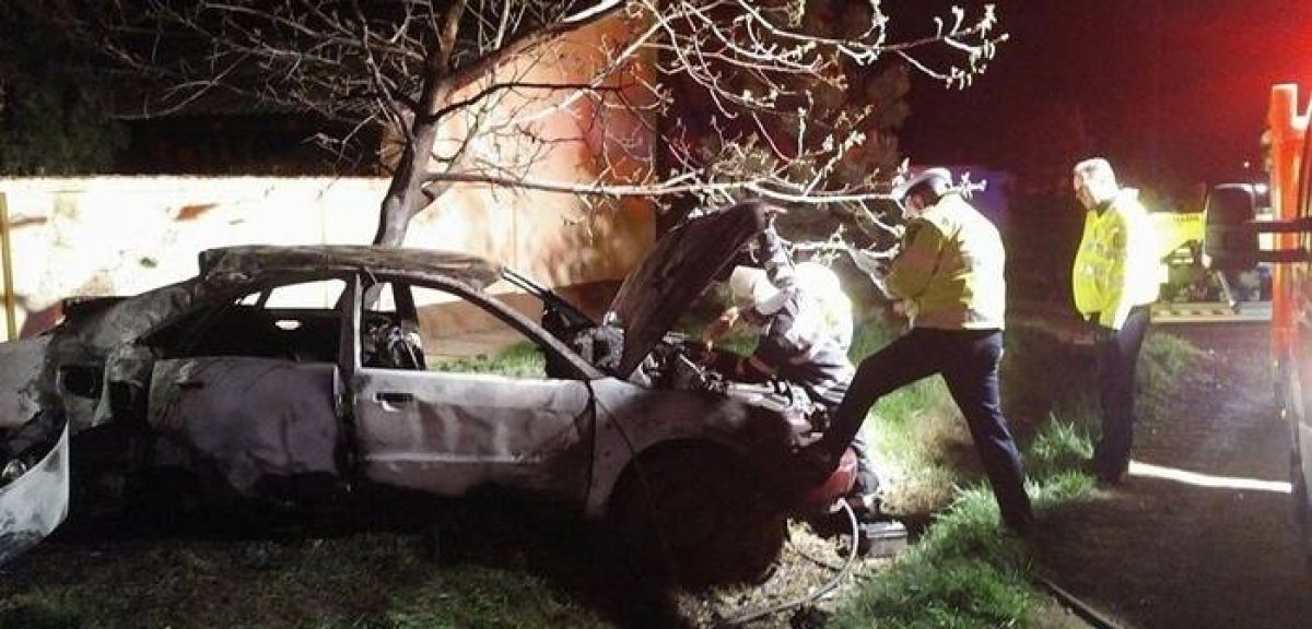 O fata de 16 ani si un baiat de 20 au pierit carbonizati, dupa ce masina in care erau pasageri a izbit un copac si a luat foc. Soferul si o tanara care statea in dreapta au reusit sa iasa imediat si au fugit, dar au fost gasiti de politie in scurt timp. Cel care s-a aflat la volan a povestit ca ar fi primit o palma si asa ar fi pierdut controlul.