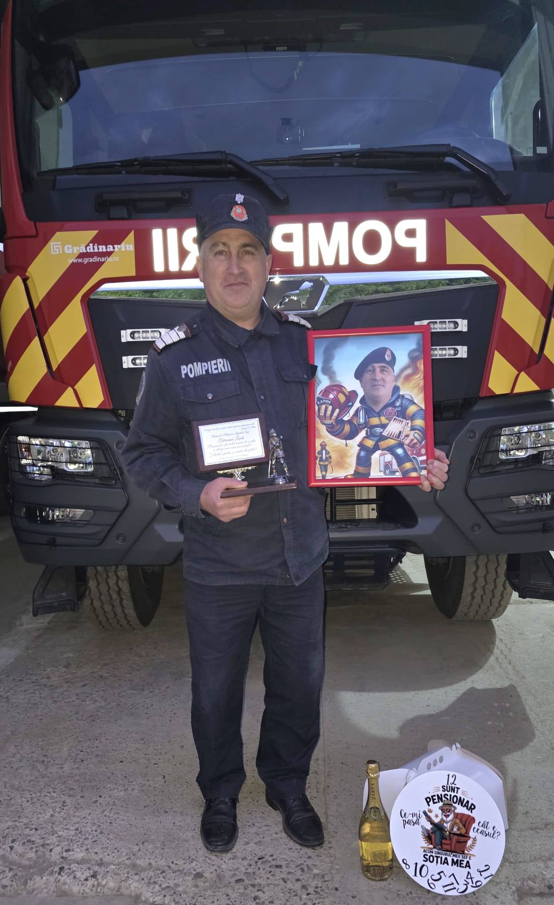 După o carieră dedicată salvării de vieți și protejării comunității, plutonierul adjutant șef Landi Turiceanu, din cadrul Gărzii de Intervenție Trușești, se retrage din activitatea de pompier militar.