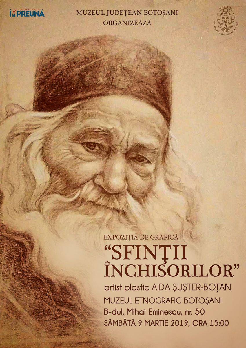 Muzeul Etnografic Botoşani găzduiește Sâmbătă 9 Martie 2019, ora 15:00, vernisajul expozitiei de grafica „Sfinţii Închisorilor”.