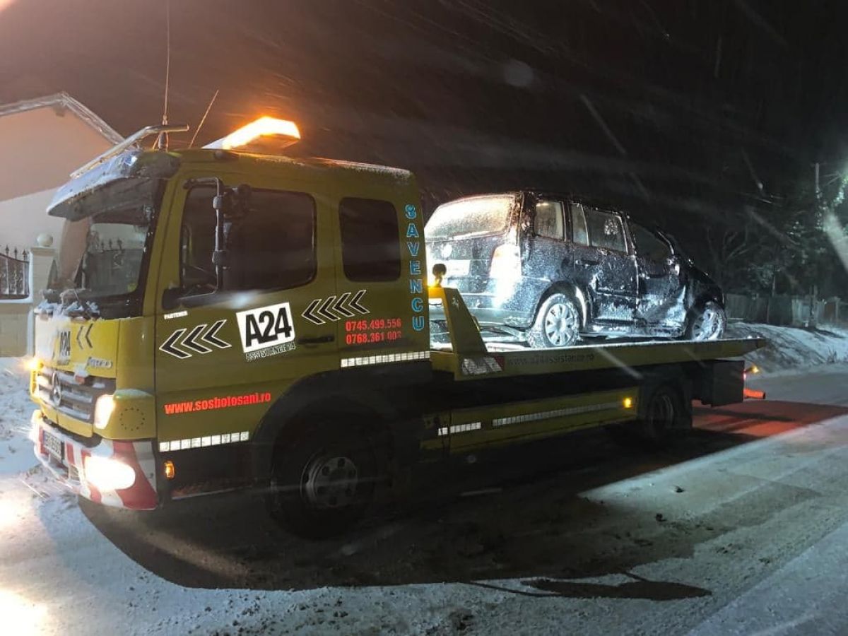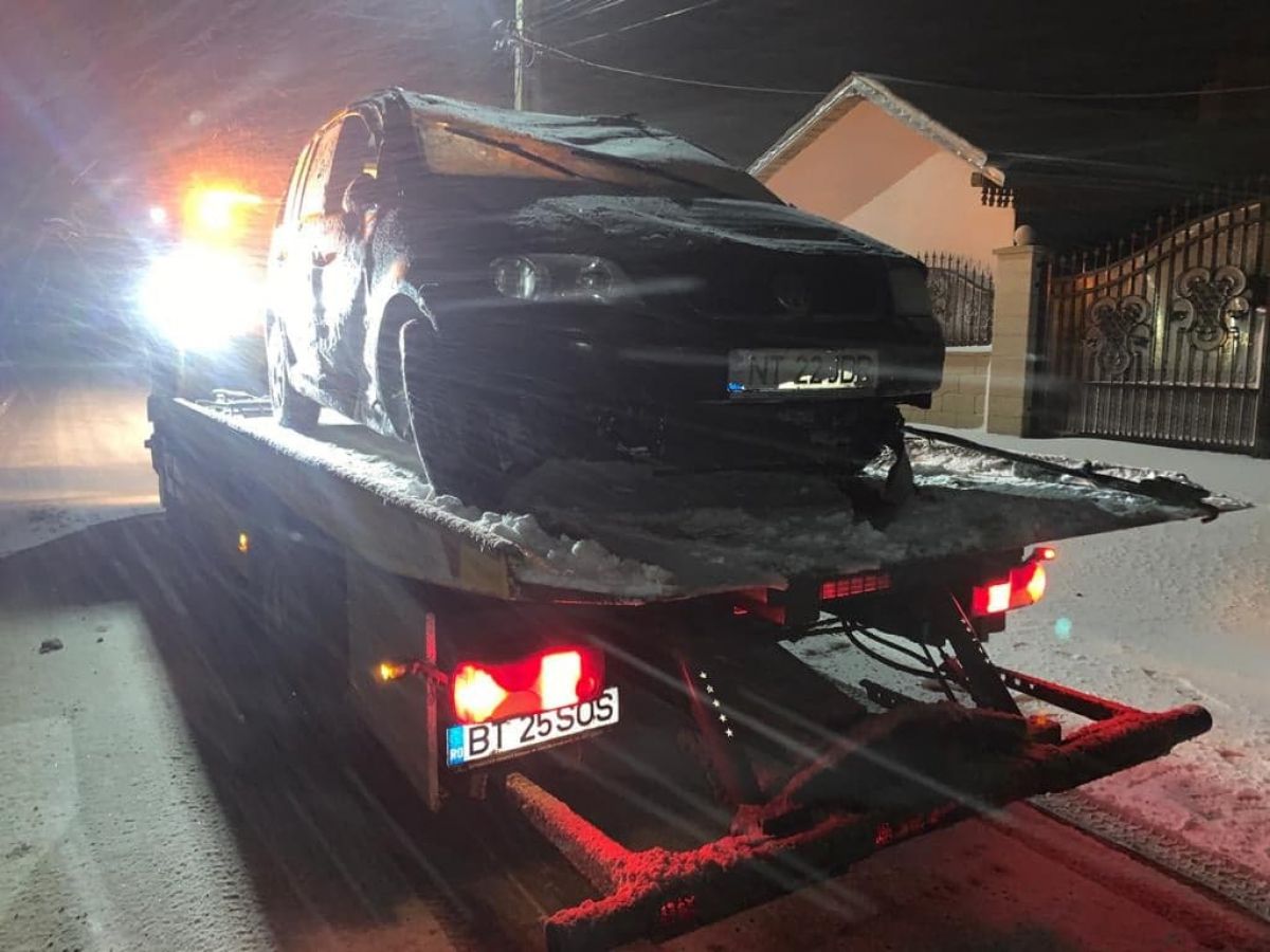 Sâmbătă seară a avut loc și primul accident grav ca urmare a precipitațiilor căzute sub formă de ninsoare. Evenimentul rutier s-a petrecut pe teritoriul localității Tudora.