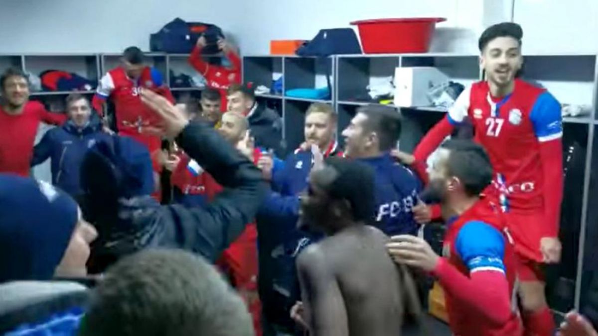La finalul partidei, jucătorii lui Marius Croitoru s-au dezlănțuit, au scandat numele echipei și au sărit prin vestiar alături de întreg staff-ul, arată Prosport.