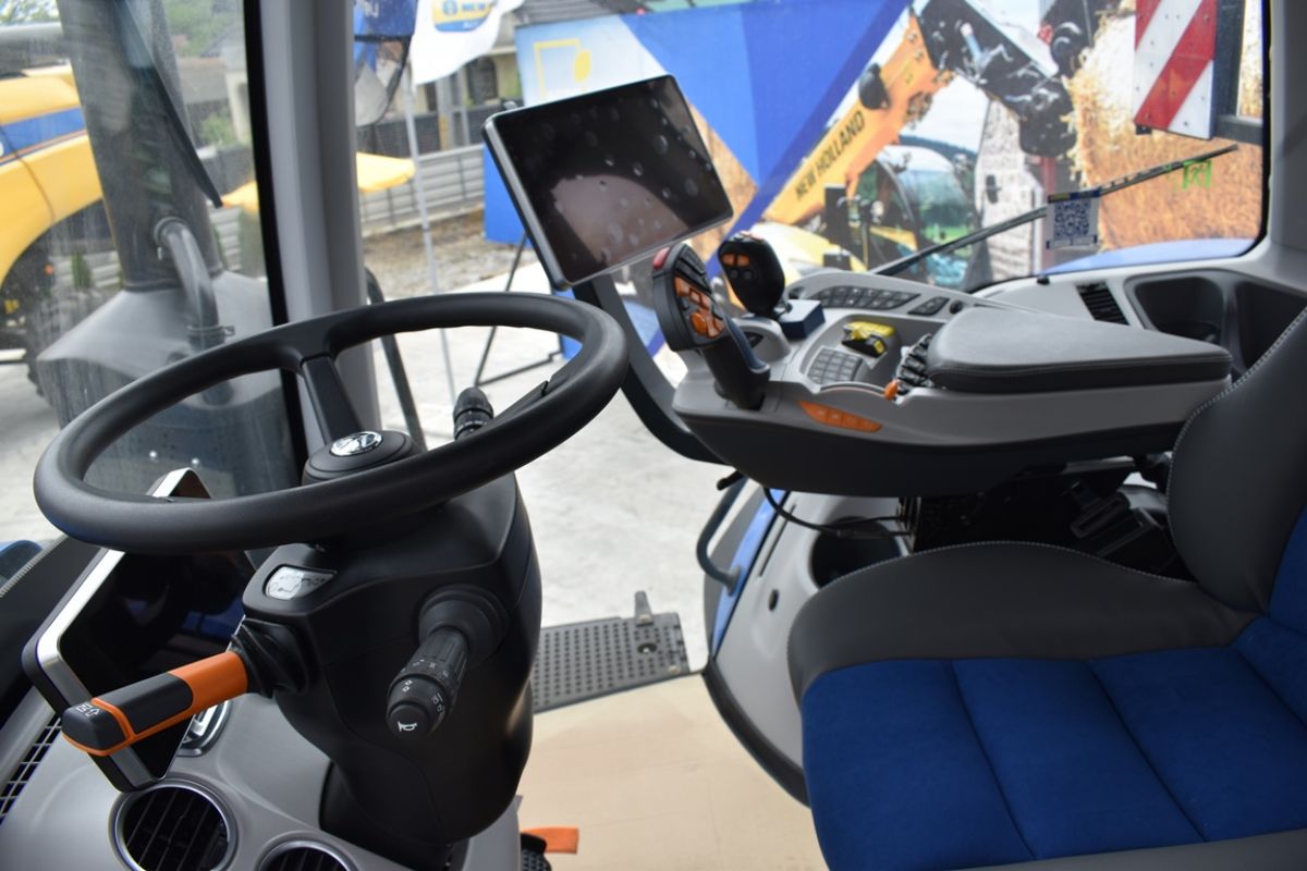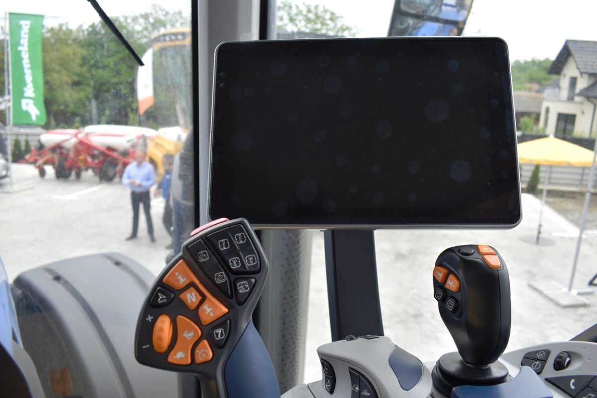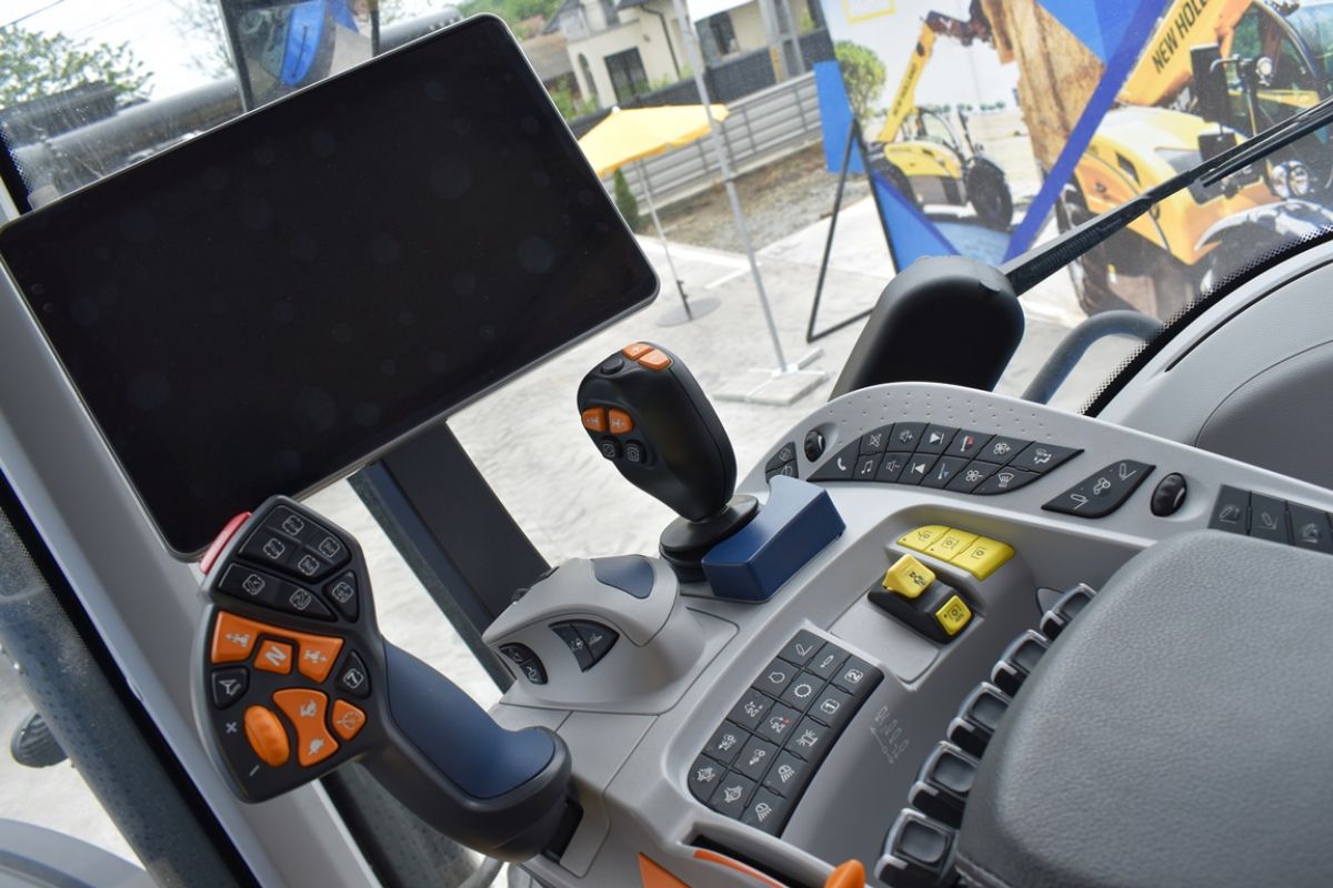 Este un tractor cât se poate de inteligent, dotat cu două tablete de pe care se pot controla mașinăria ca atare, dar și utilajele agricole adiacente.