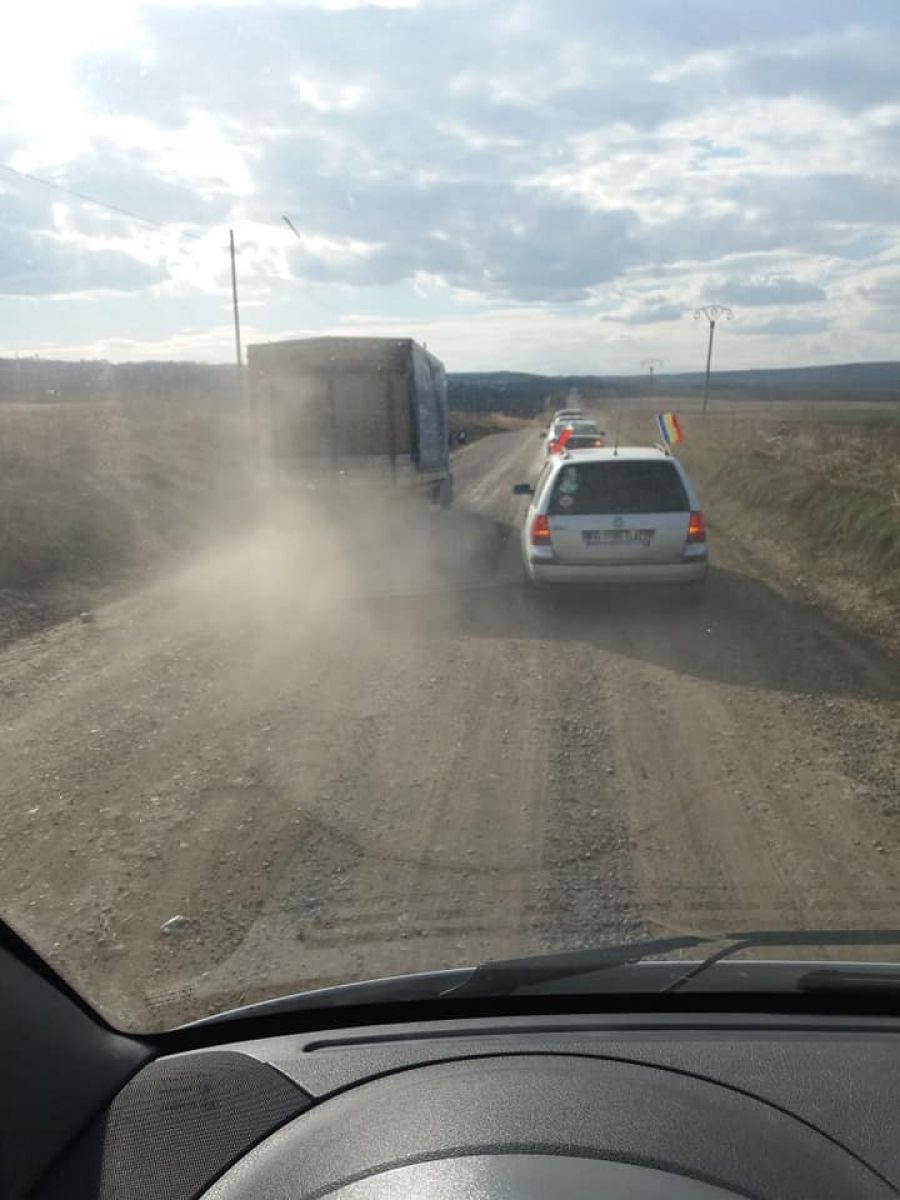 Mai mulţi conducători auto au staţionat pe avarii pentru a atrage atenţia asupra stării proaste a drumului DJ 294 Mihălășeni – Dângeni. Coloana de maşini a pornit ulterior într-un marş pe câţiva kilometri.